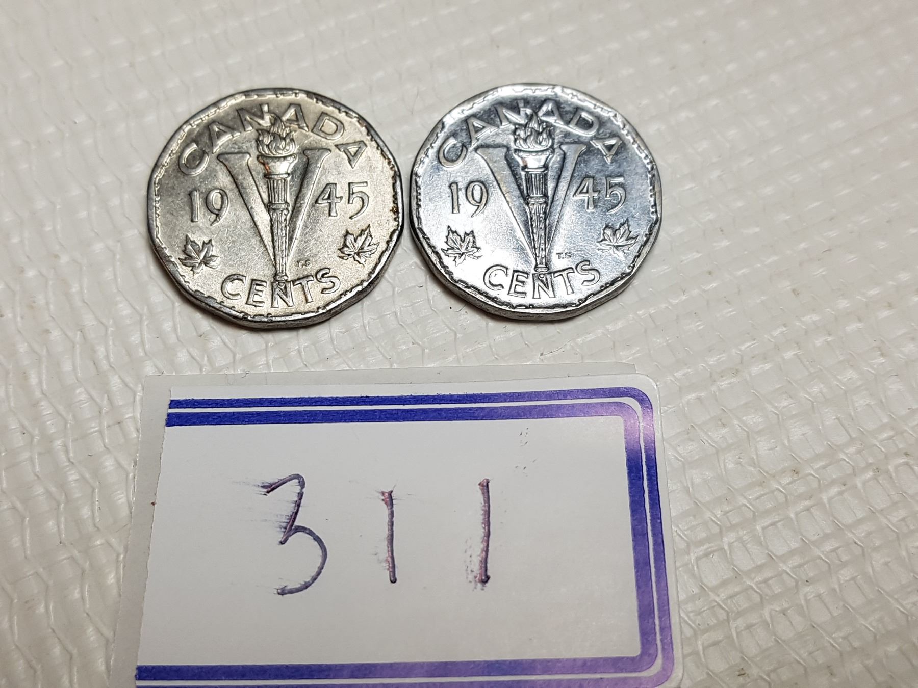 TWO 1945 MISSING CHROME 5 CENT COINS