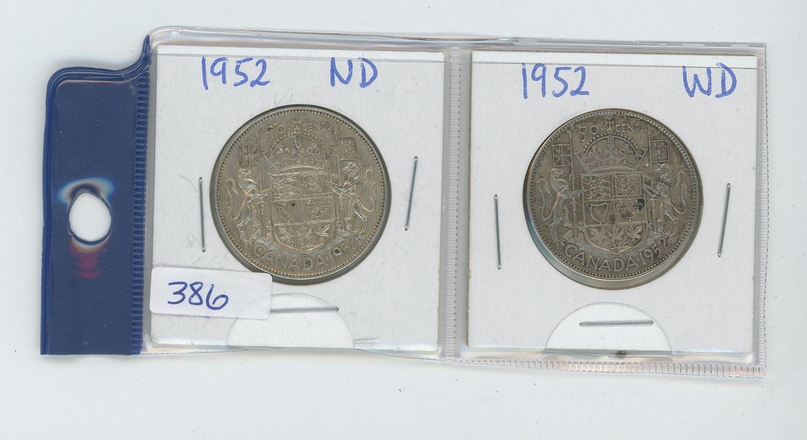 TWO 1952 50 CENT PIECES