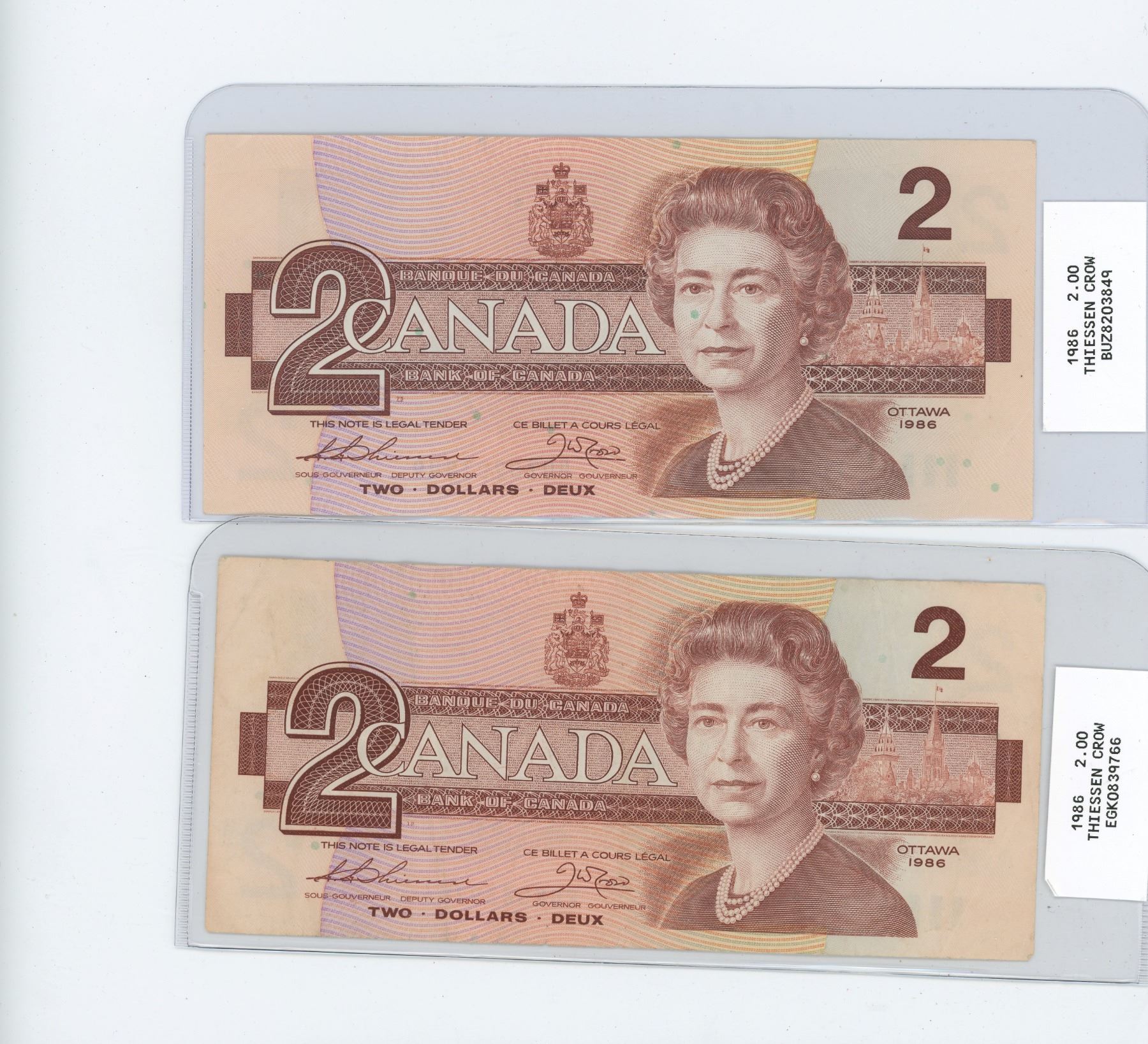 TWO 1986 TWO DOLLAR BILLS