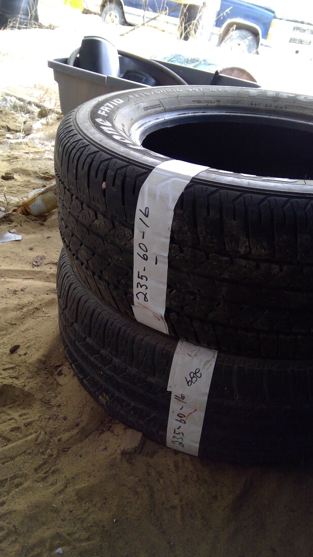 TWO 235-60-16 MISMATCHED TIRES