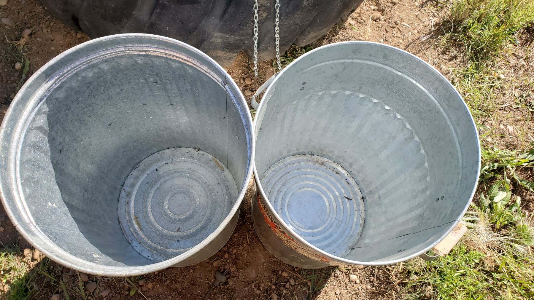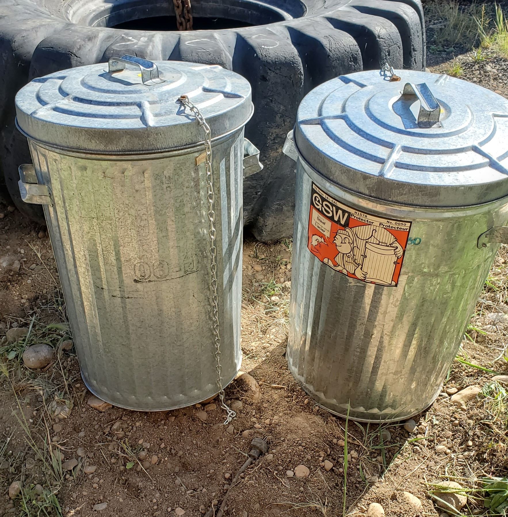 TWO GALVANIZED GARBAGE BINS 75L