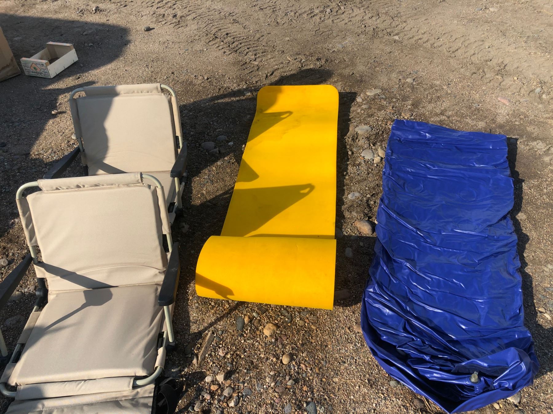 TWO GROUND CHAIRS + AIR MATTRESS + FOAM MATS