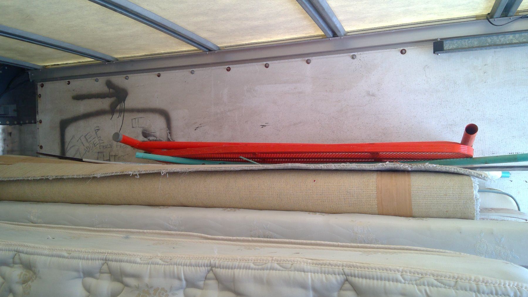 TWO IRONING BOARDS AND PIECE OF GRAY CARPET - CARPET APPROX. 8' X 10'