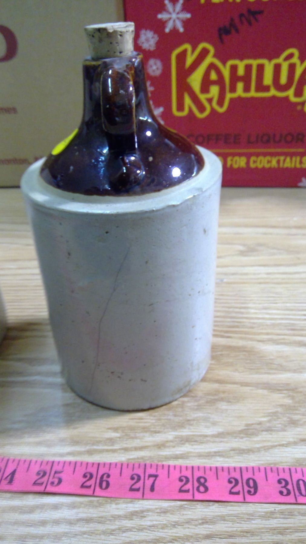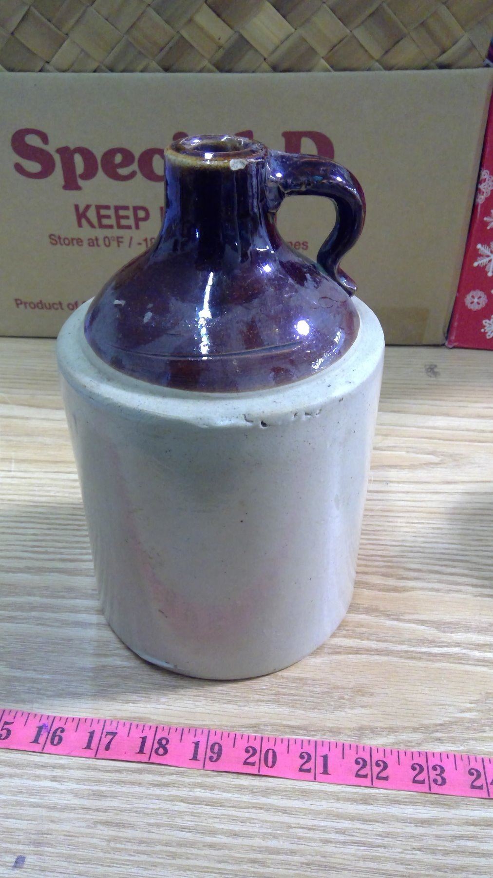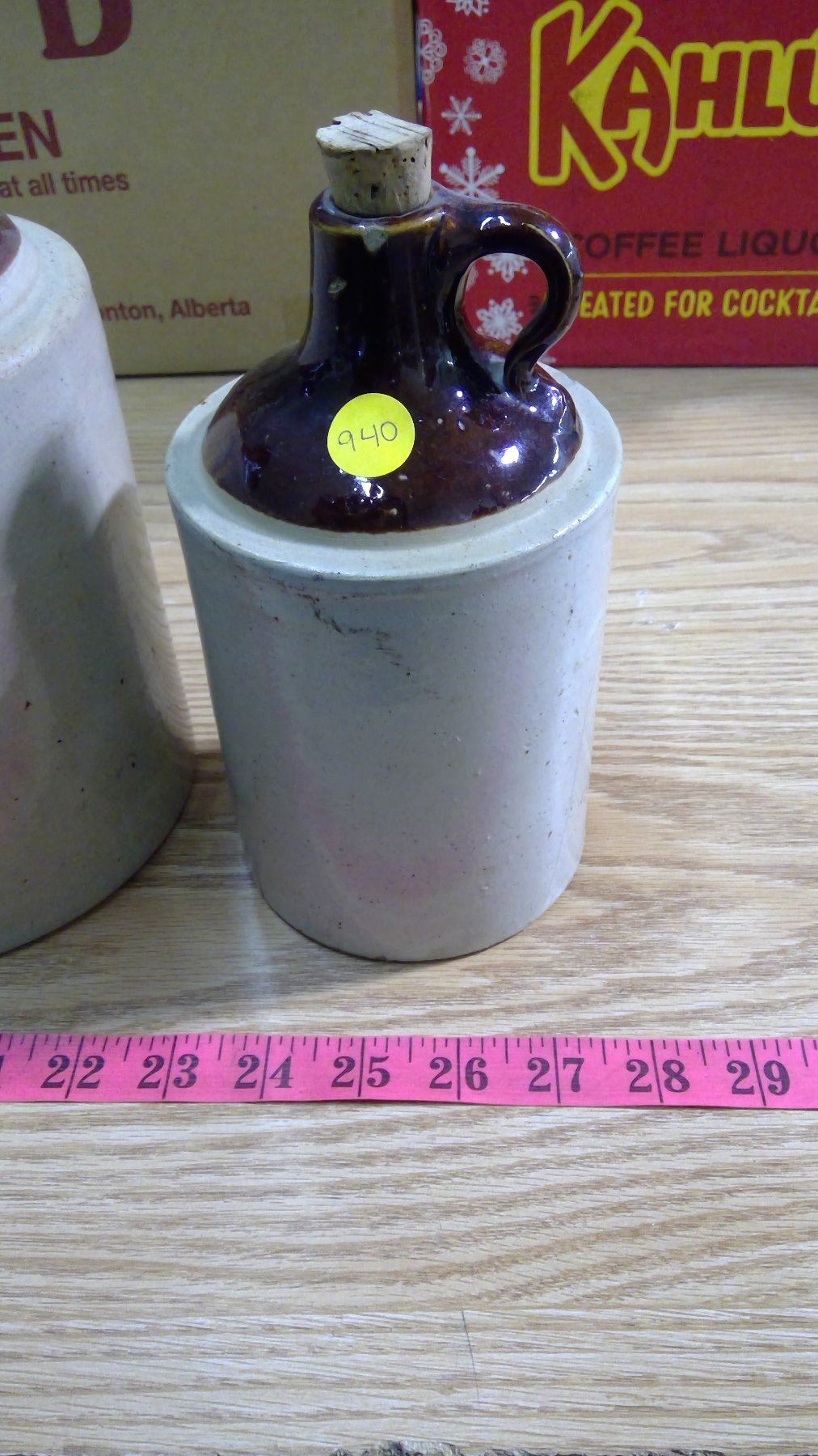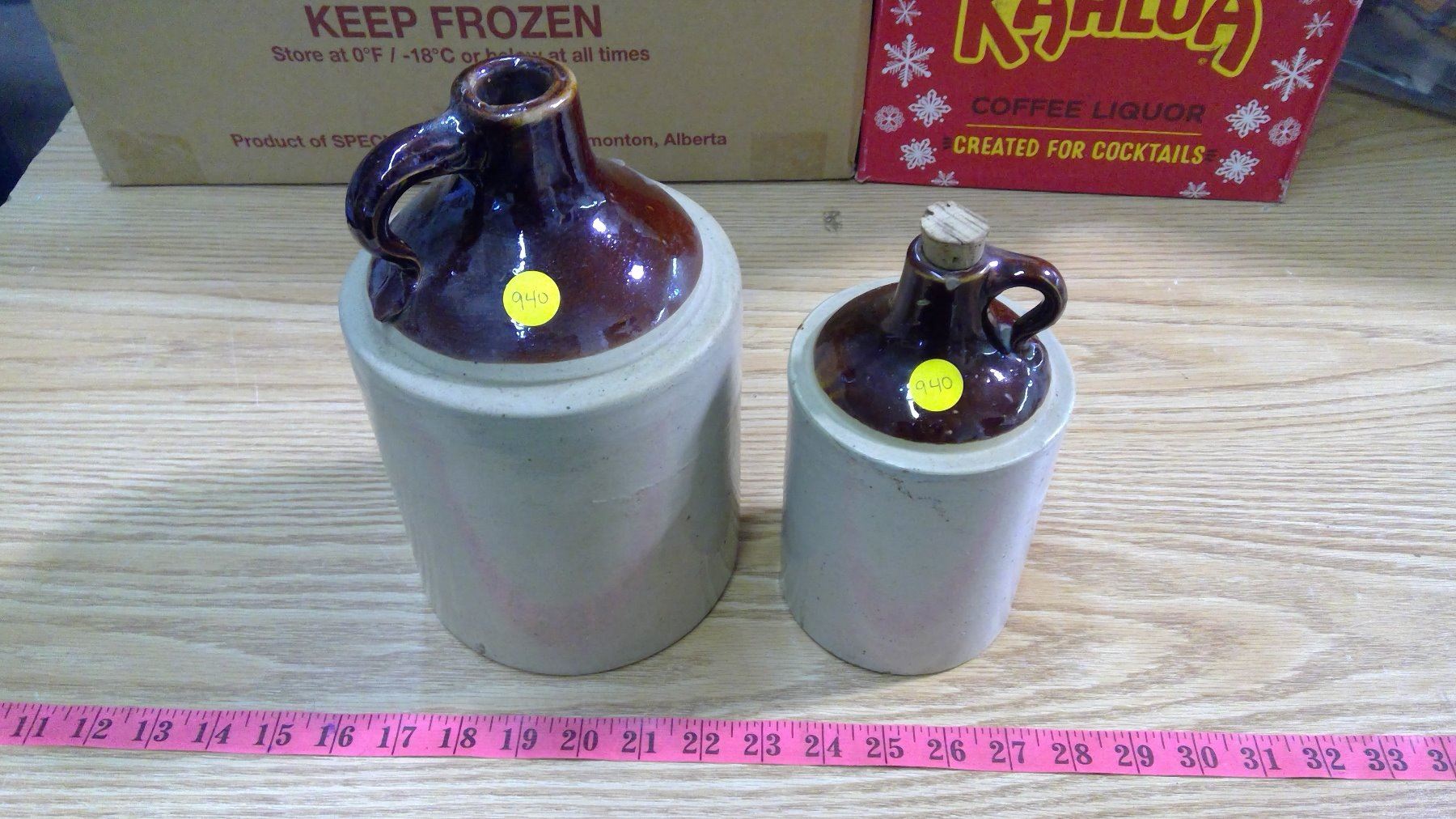 TWO JUGS - (HALF GALLON AND QUARTER GALLON - QUARTER GALLON HAS A CRACK)