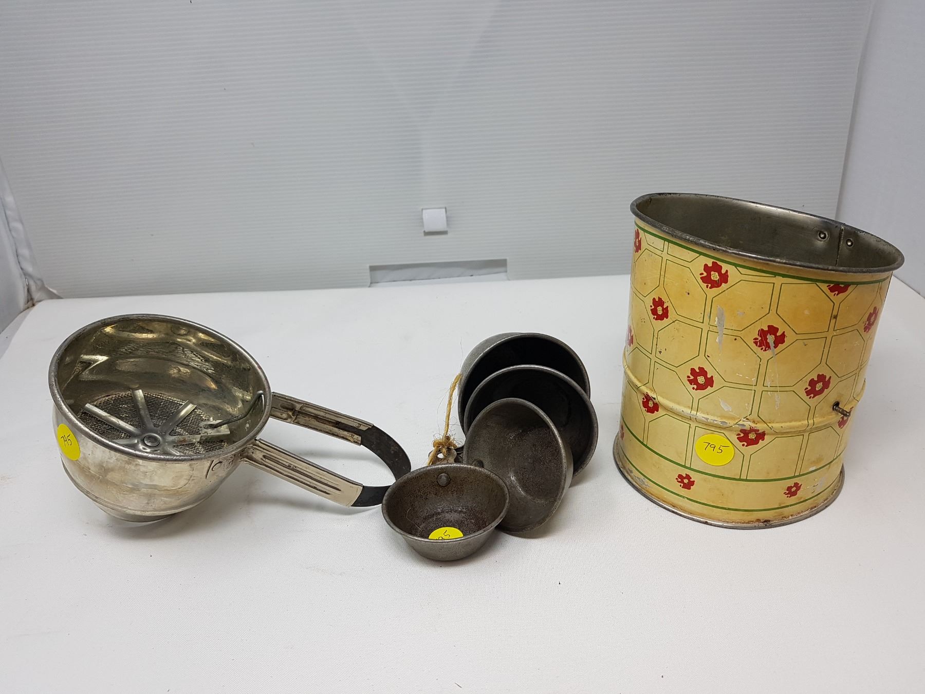 TWO KITCHEN SIFTERS AND MEASURING CUPS