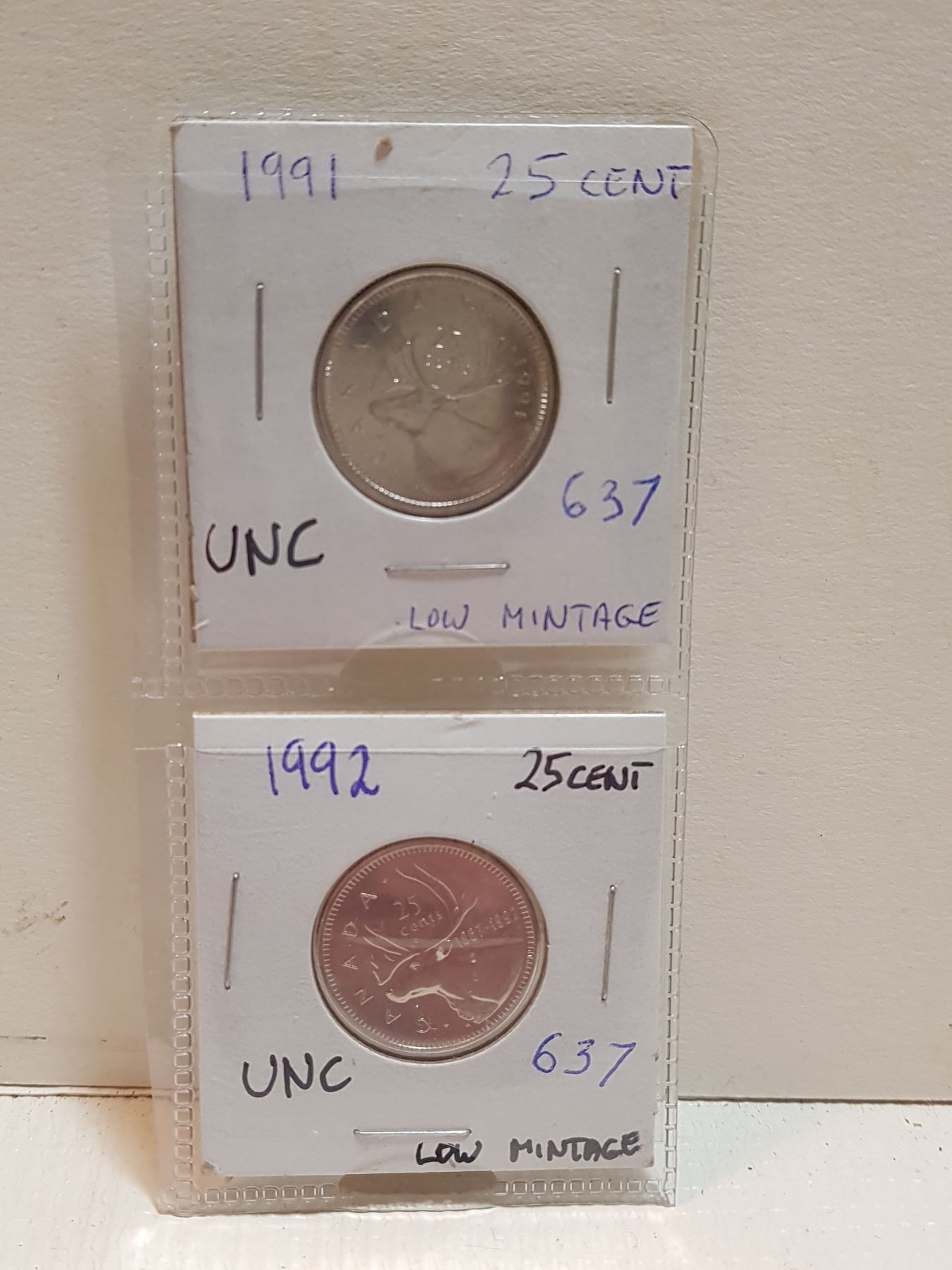 TWO LOW MINTAGE 25 CENT COINS (1991 & 1992)