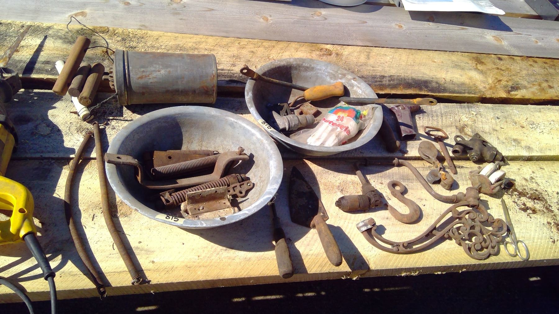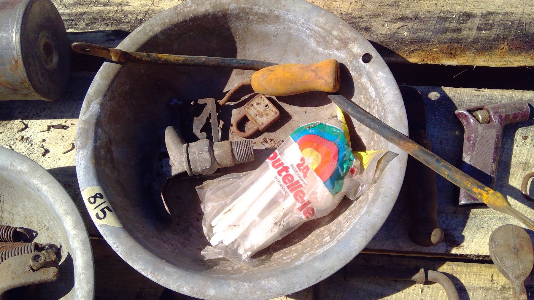 TWO METAL BOWLS FILLED WITH ASSORTED TOOLS/PARTS