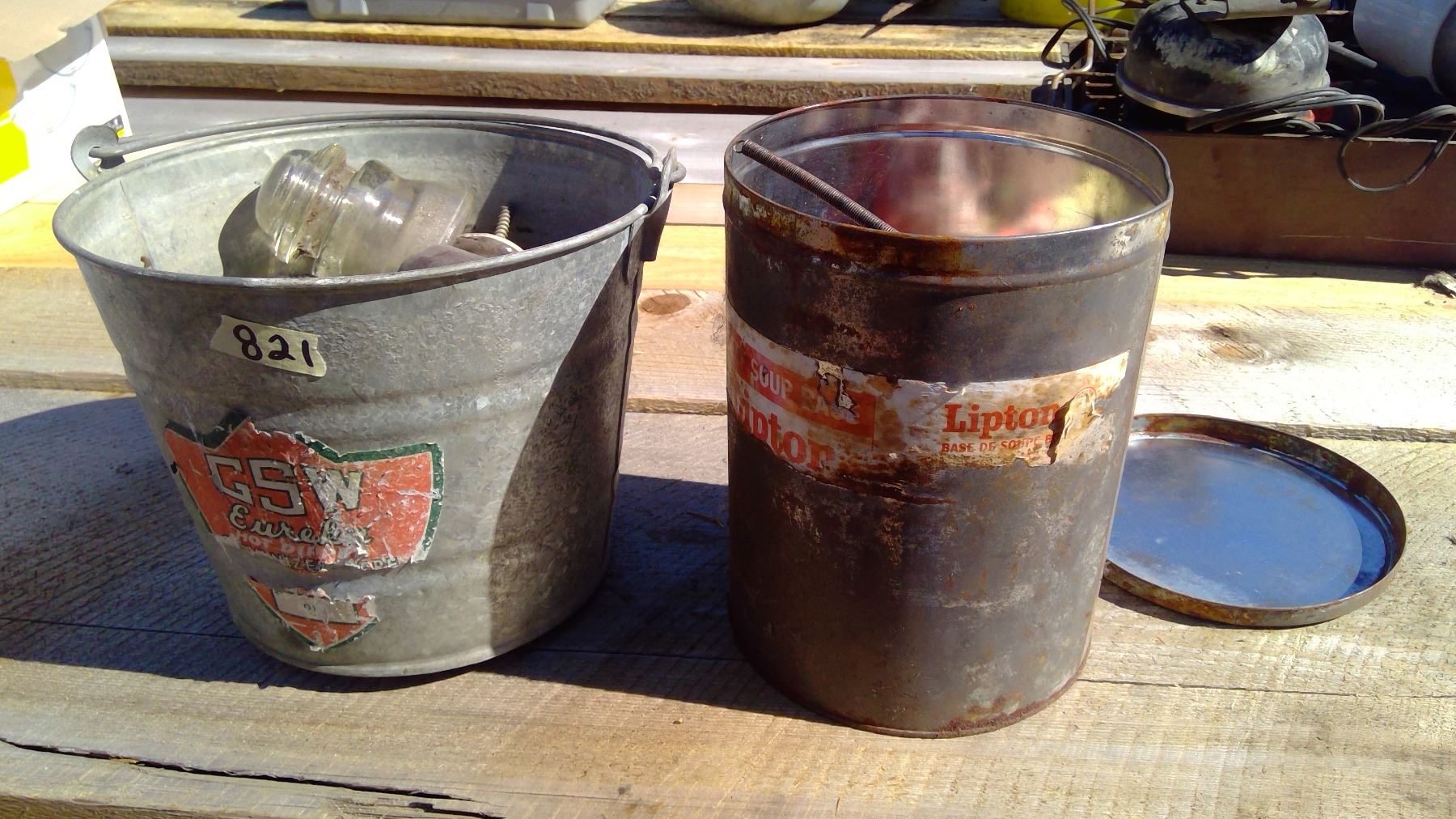 TWO METAL PAILS OLD ODS/ENDS