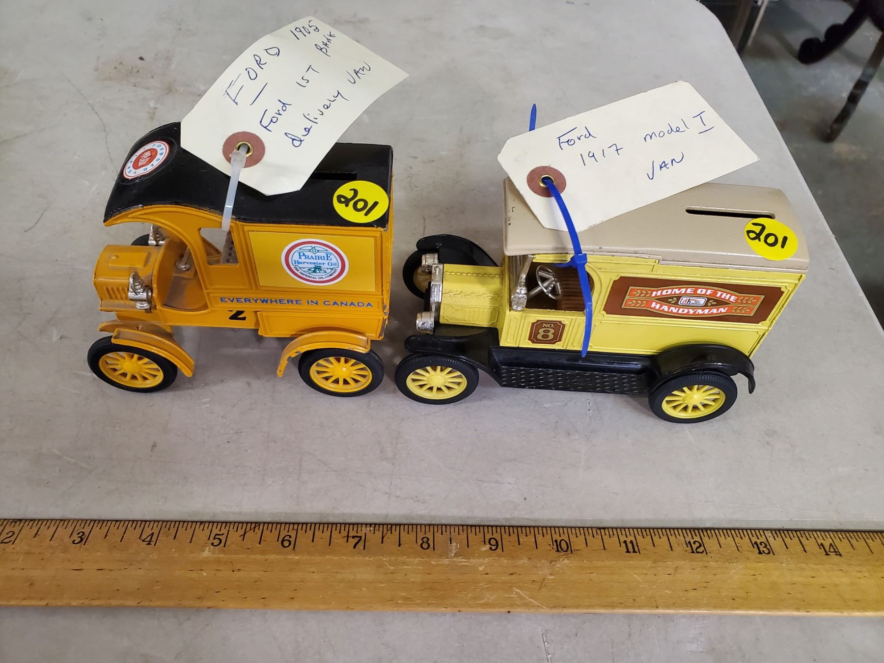 TWO MODEL CAR BANKS (1905 FORD DELIVERY, 1917 MODEL T VAN)