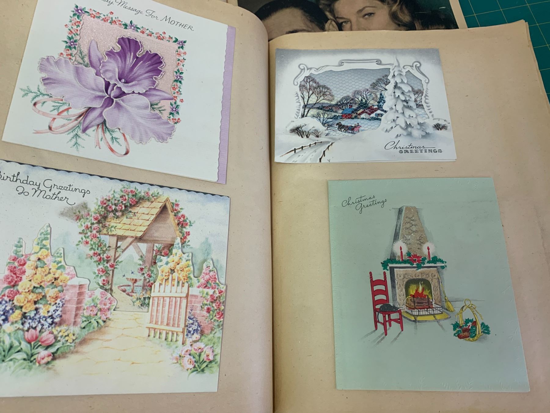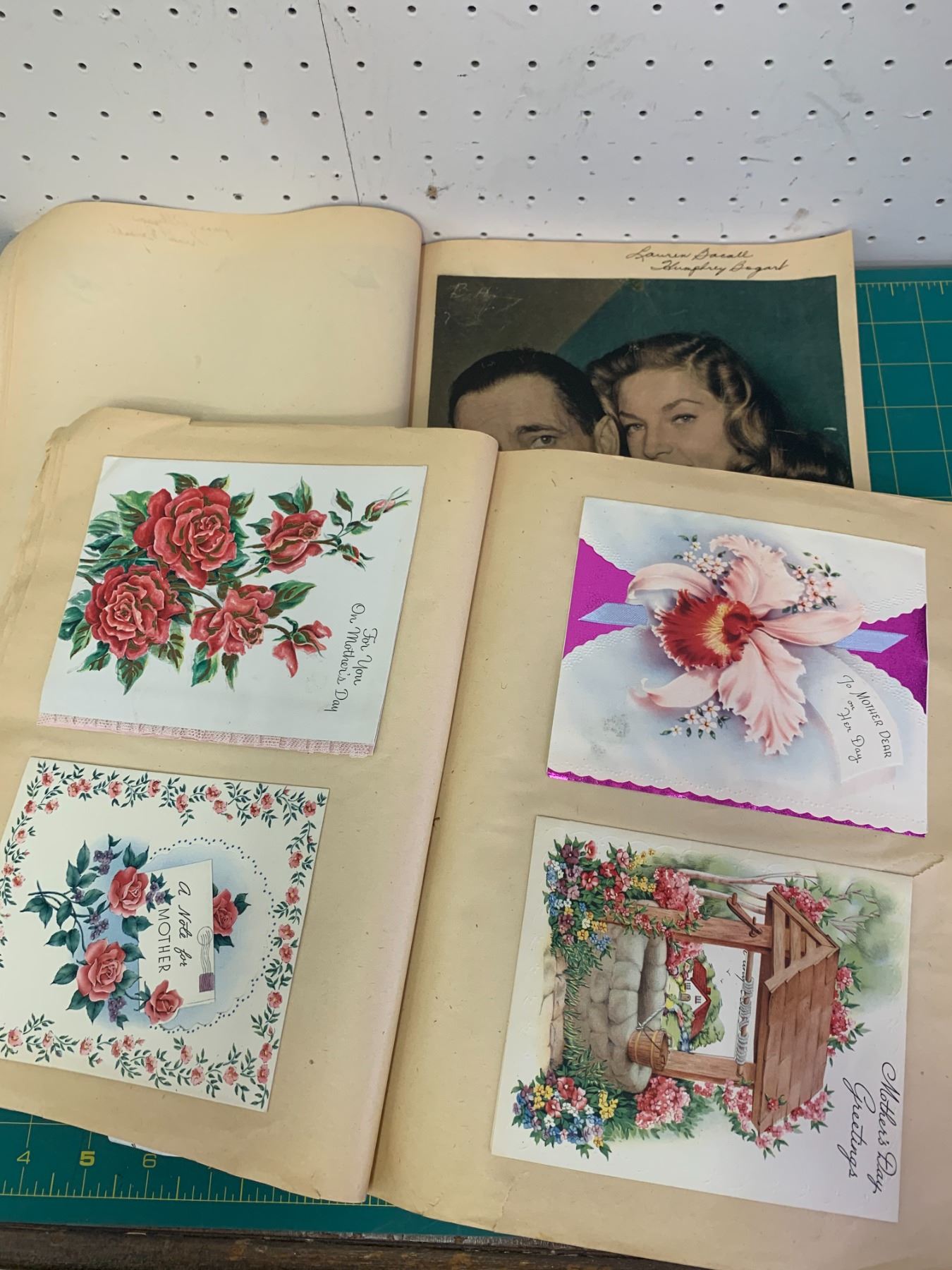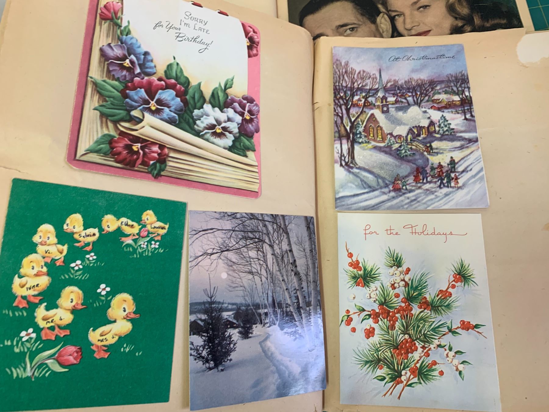TWO OLD SCRAP BOOKS HOLLYWOOD STARS AND OCCASIONAL CARDS CHRISTMAS ETC