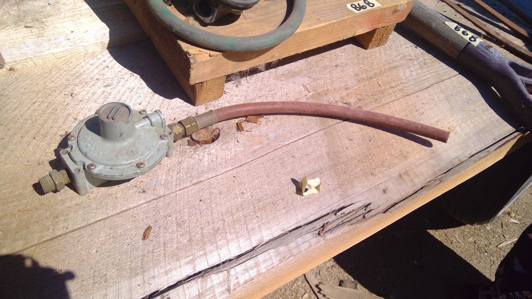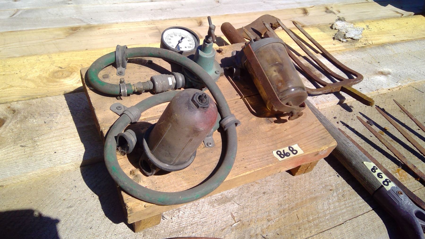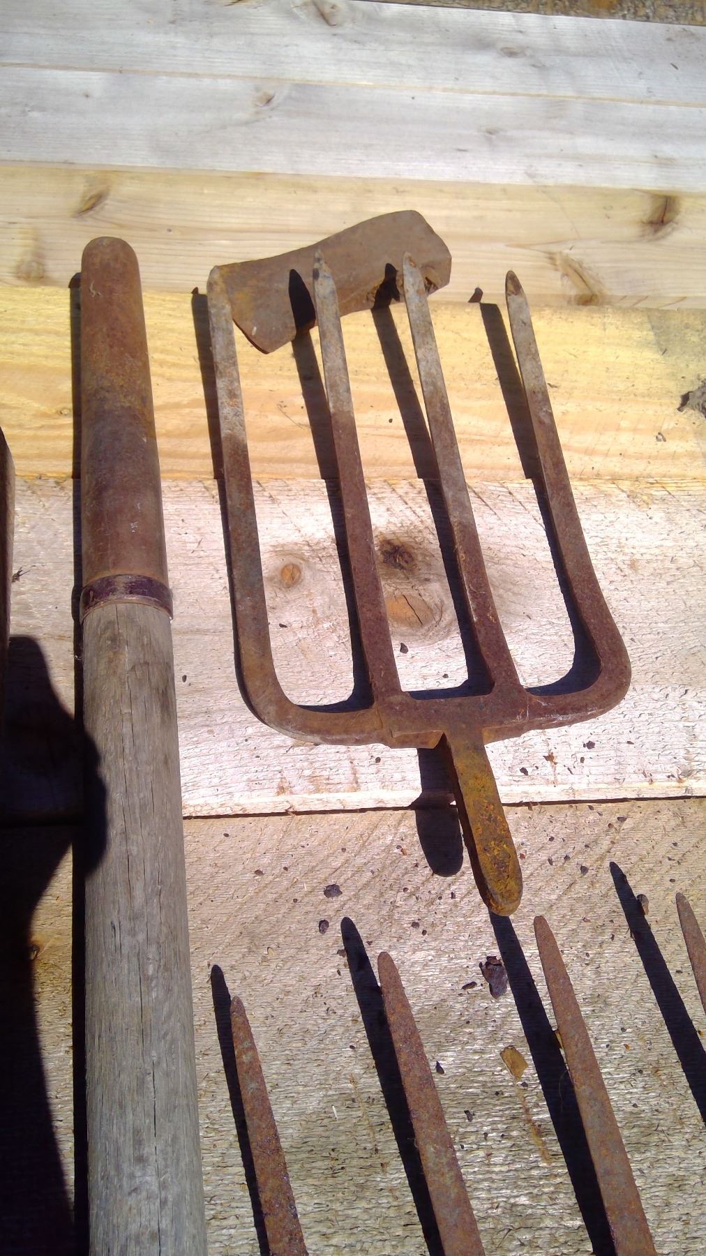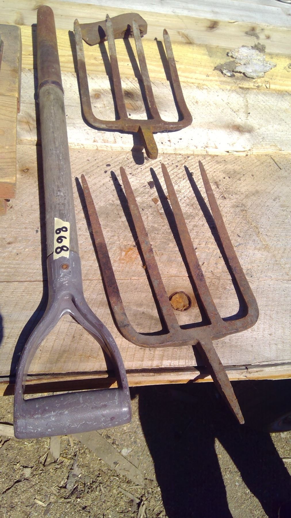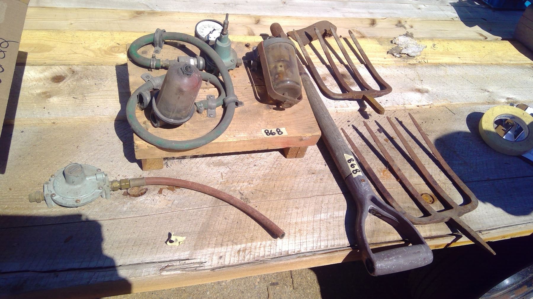 TWO PITCHFORK HEADS+HATCHET HEAD+HANDLE FOR PITCHFORK+AIR CONTROL+PROPAINE REGULATOR