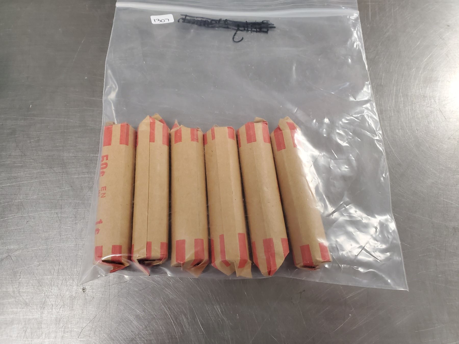 TWO POUNDS OF ROLLED PENNIES (UNKNOWN YEARS)