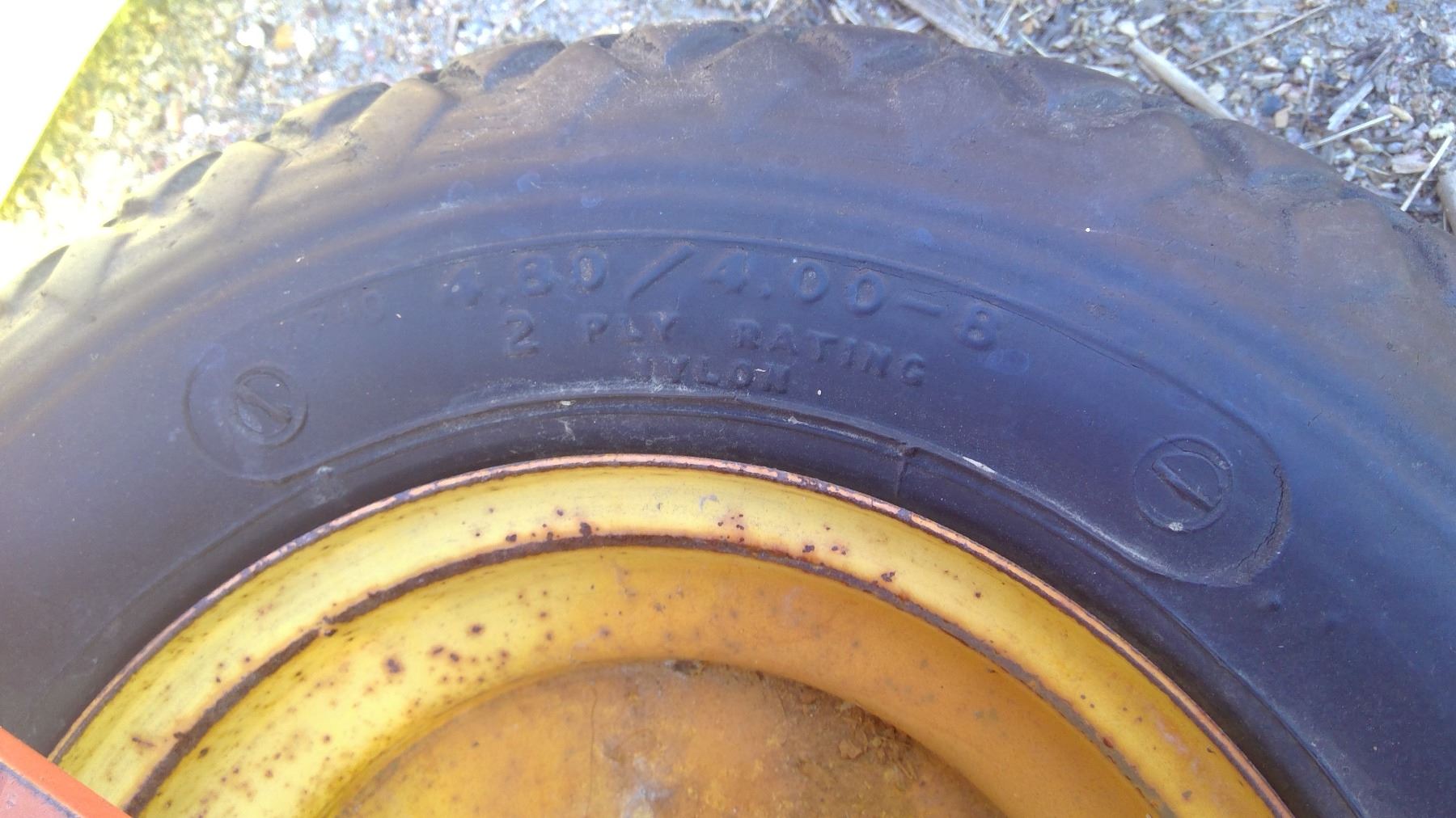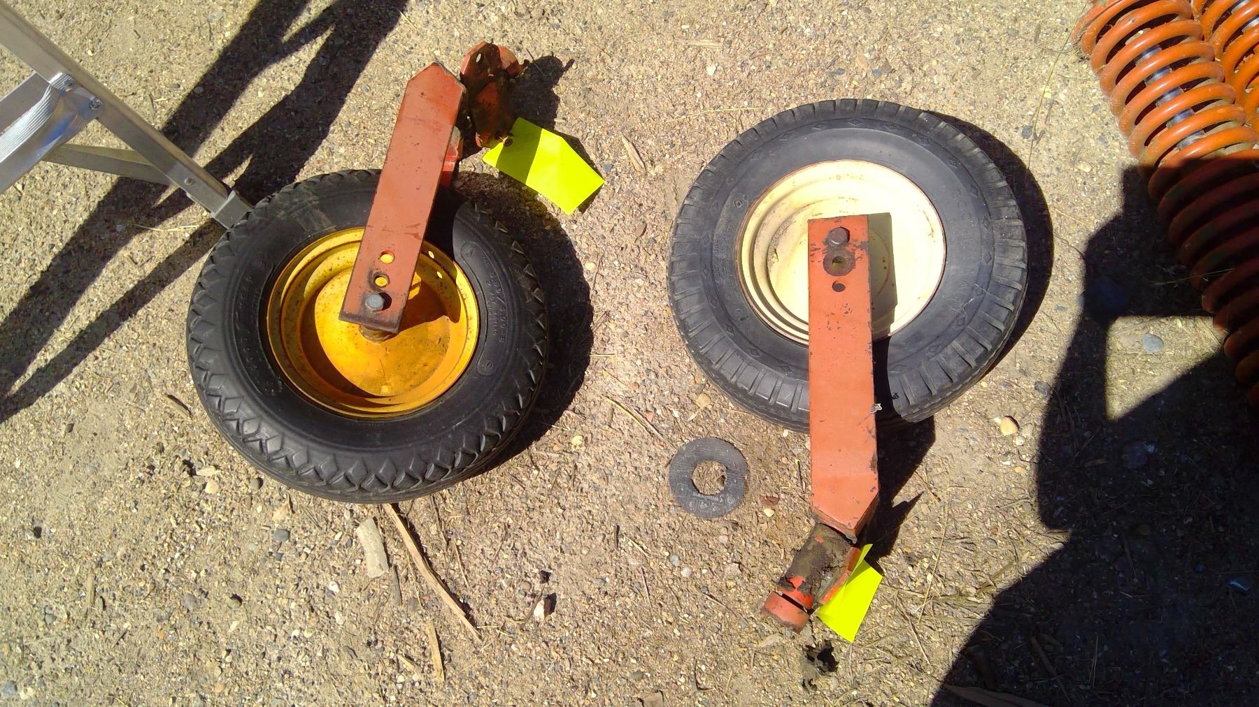 TWO TRACTOR TIRES ORANGE