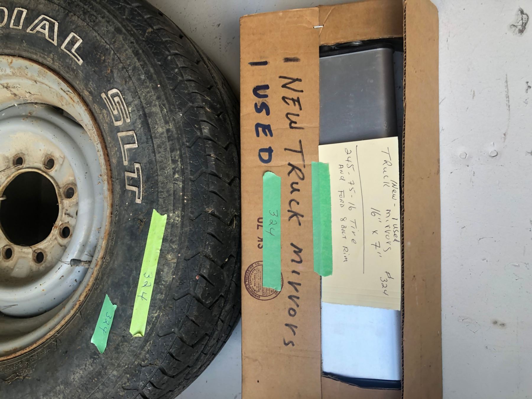 TWO TRUCK MIRRORS (1 NEW, 1 USED) & 245-75-16 TIRE