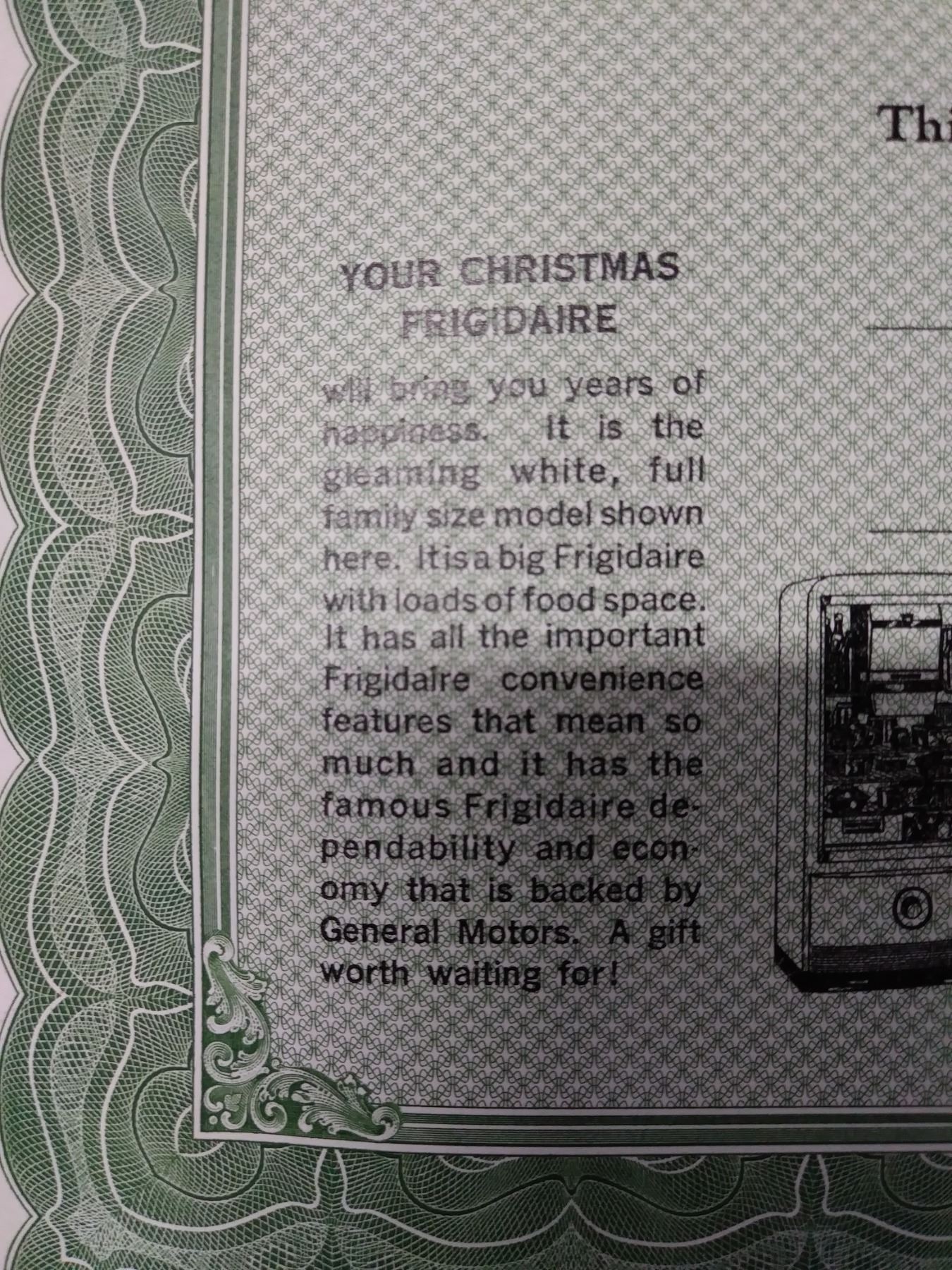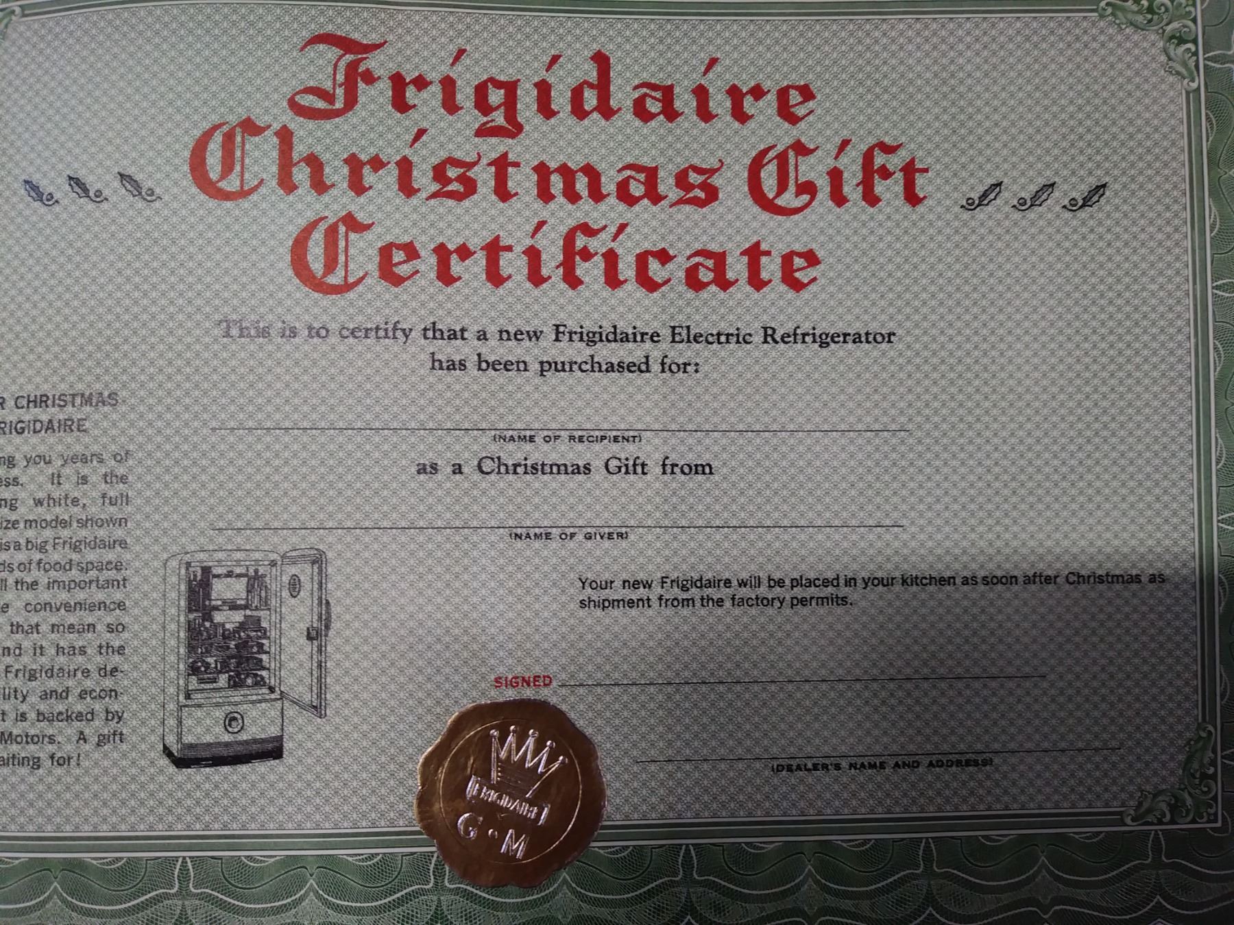 TWO VINTAGE FRIGIDAIRE GIFT CERTIFICATES FROM GENERAL MOTORS