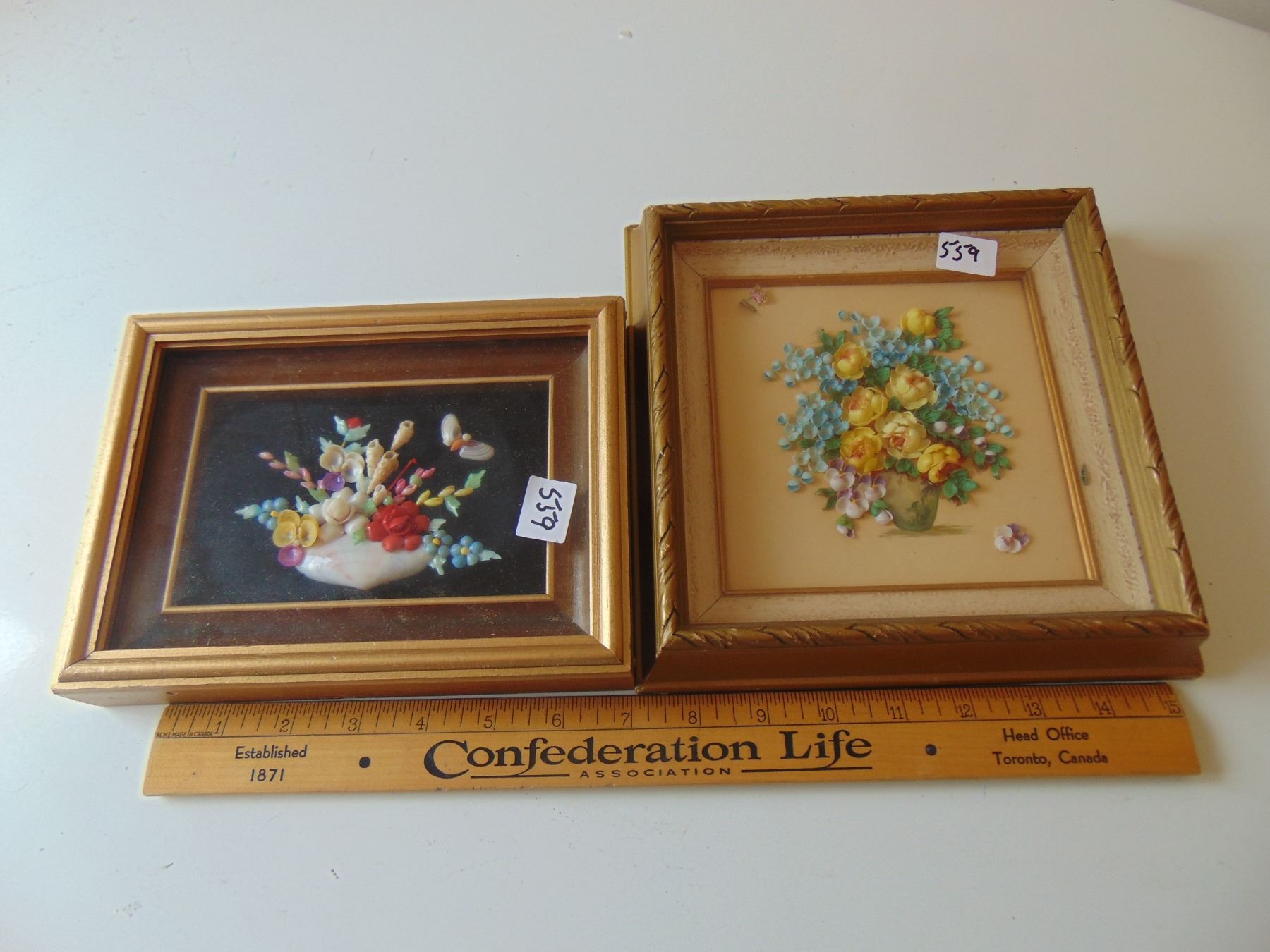 TWO VINTAGE SHELL ART "SAILOR'S VALENTINES"