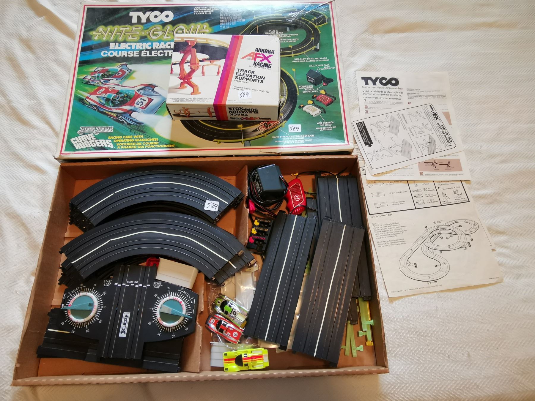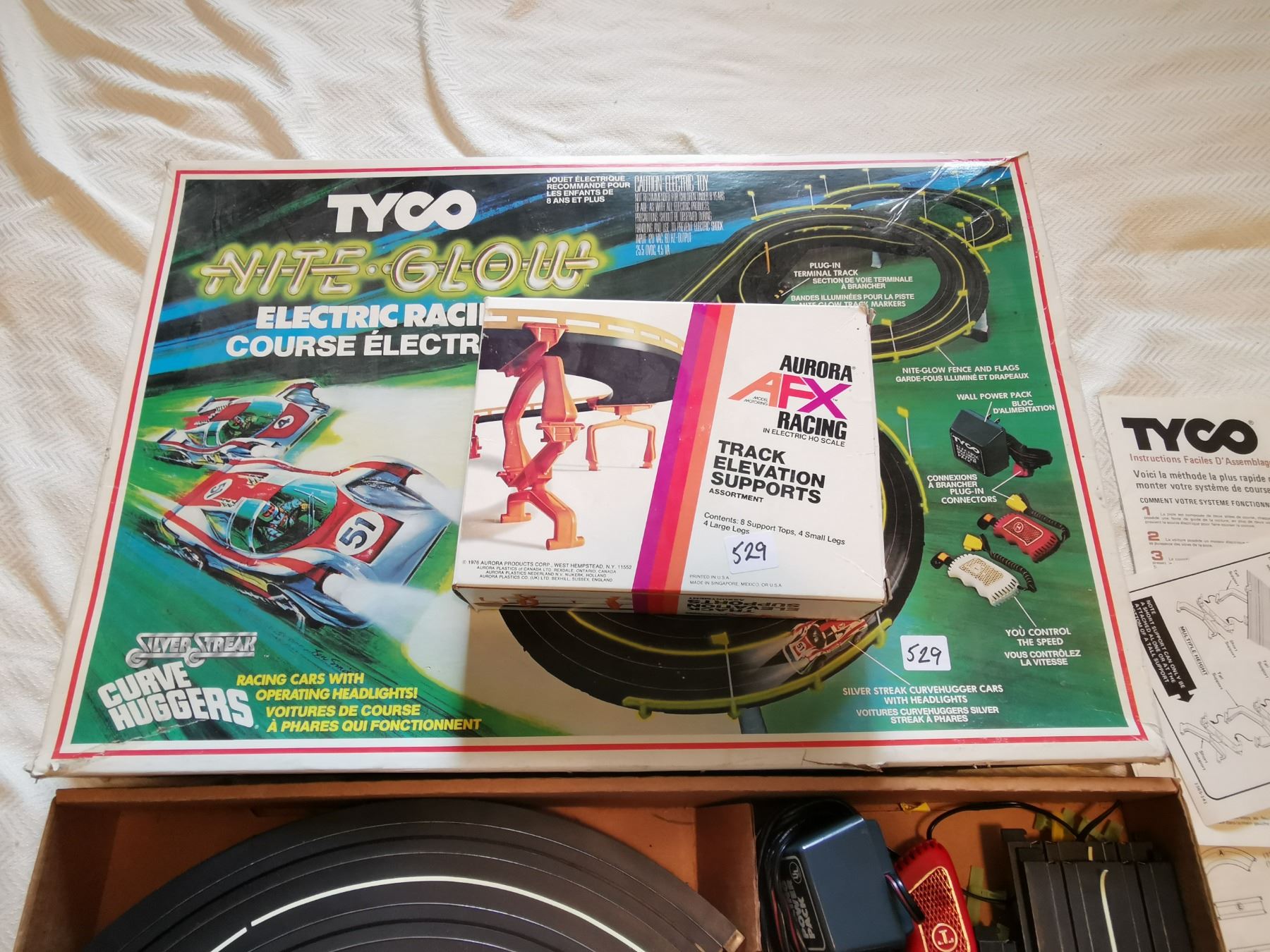 TYCO, NITE GLOW RACING GAME & EXTRA BOX, NOT TESTED