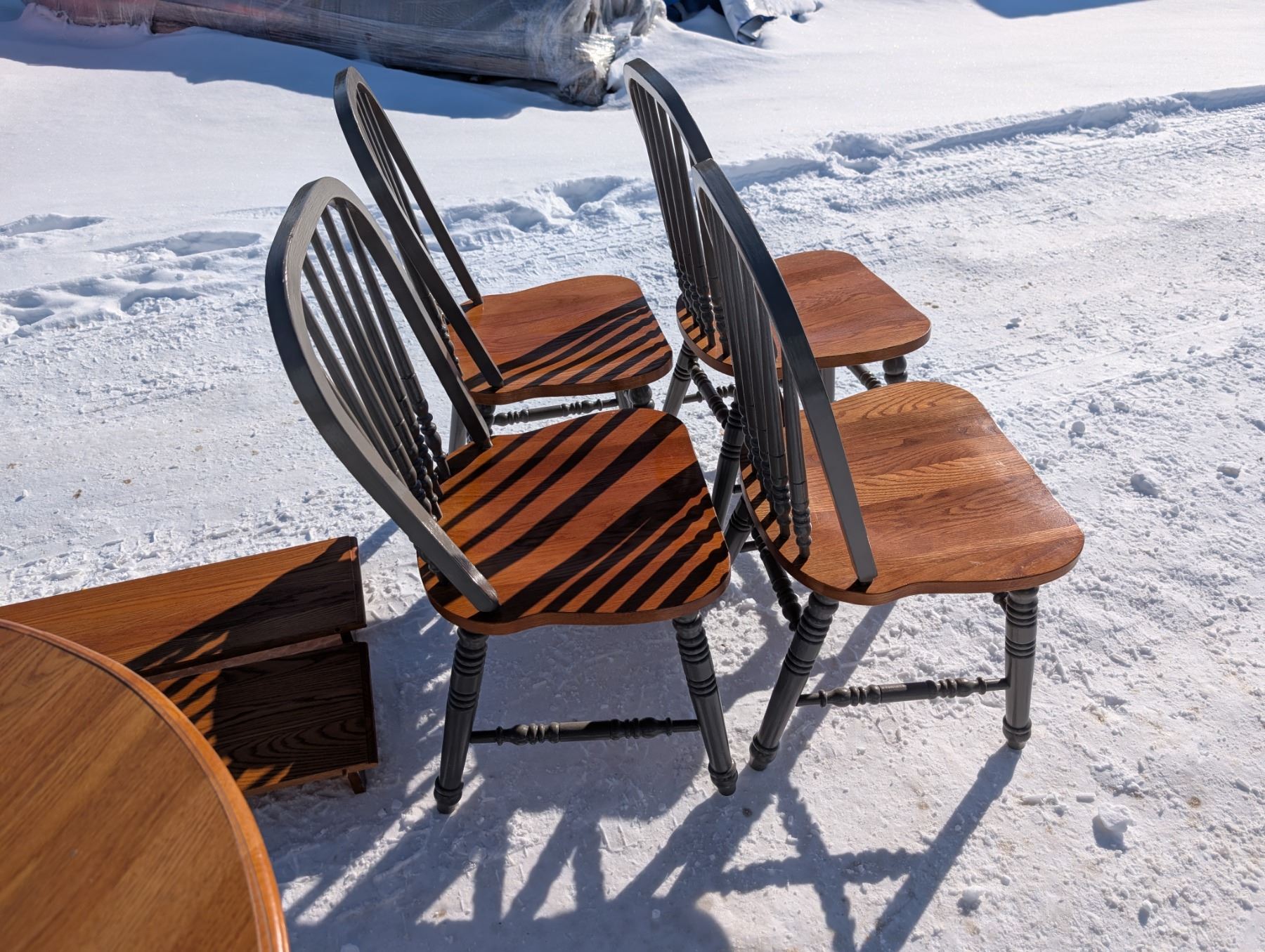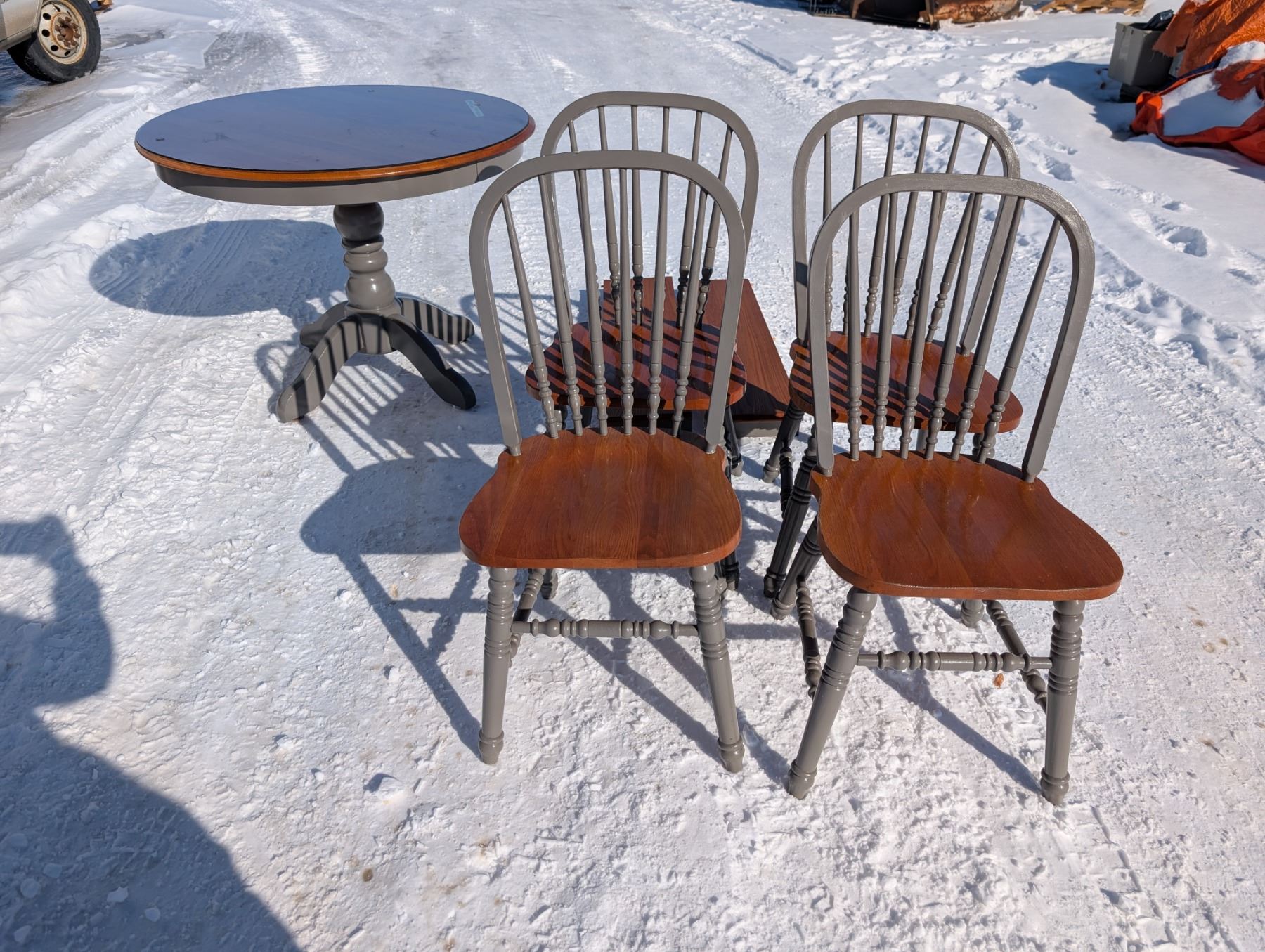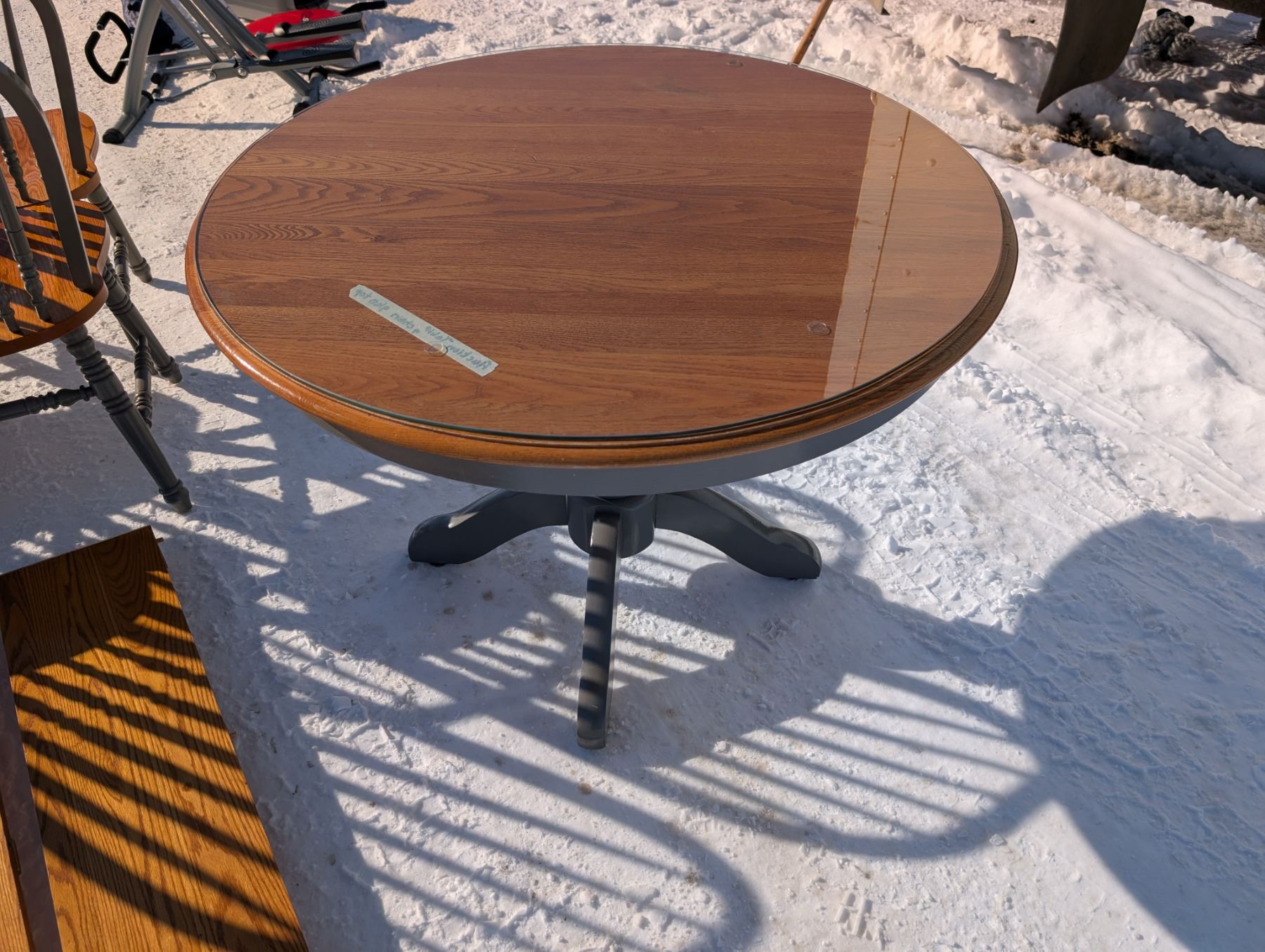 Table Set w/ (2) Leafs (4) Chairs, and Glass Round Top (39"-59"x39"x30")