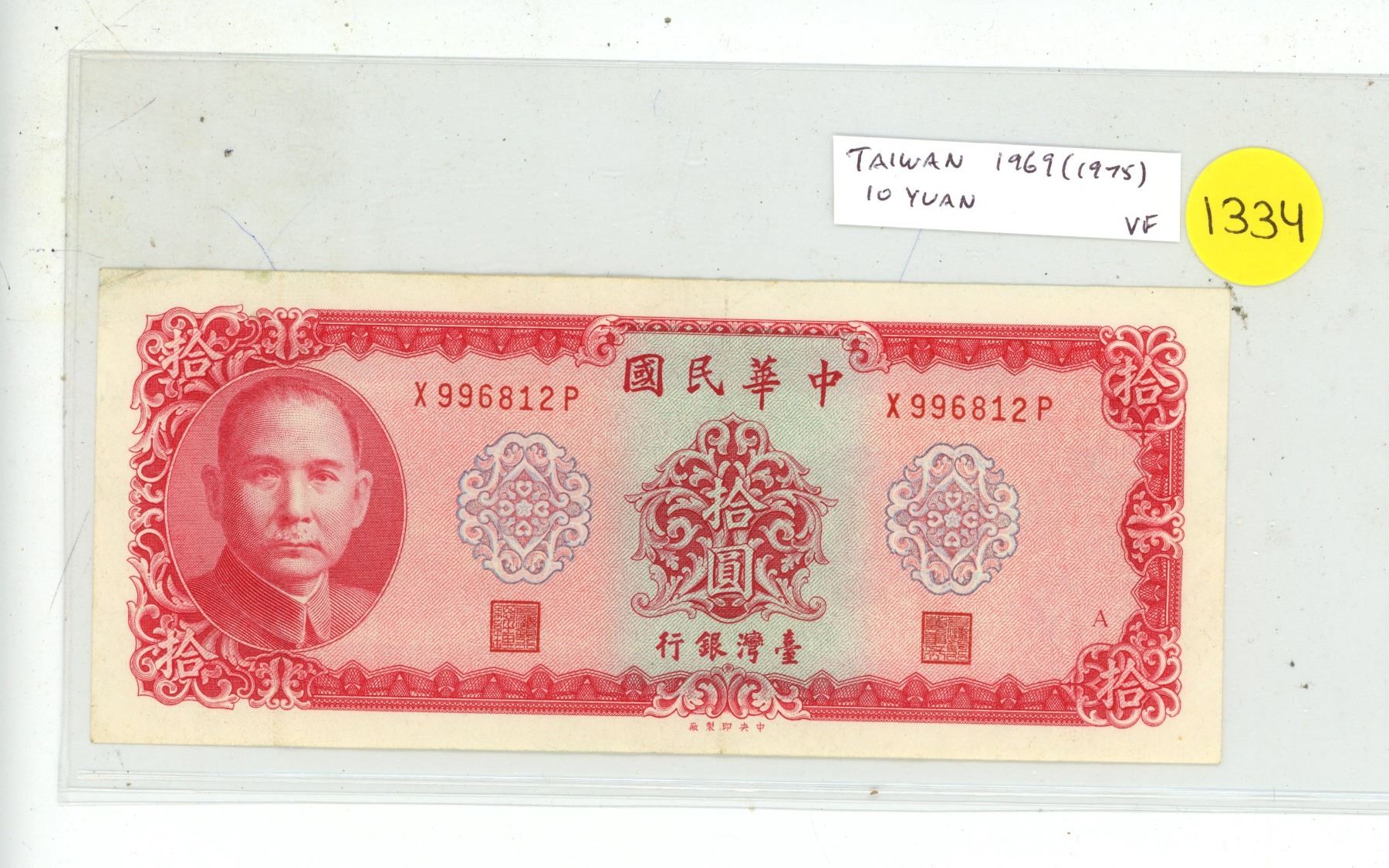 Taiwan. 1969 (1975) 10 Yuan. Chiang Kai Shek. VF.