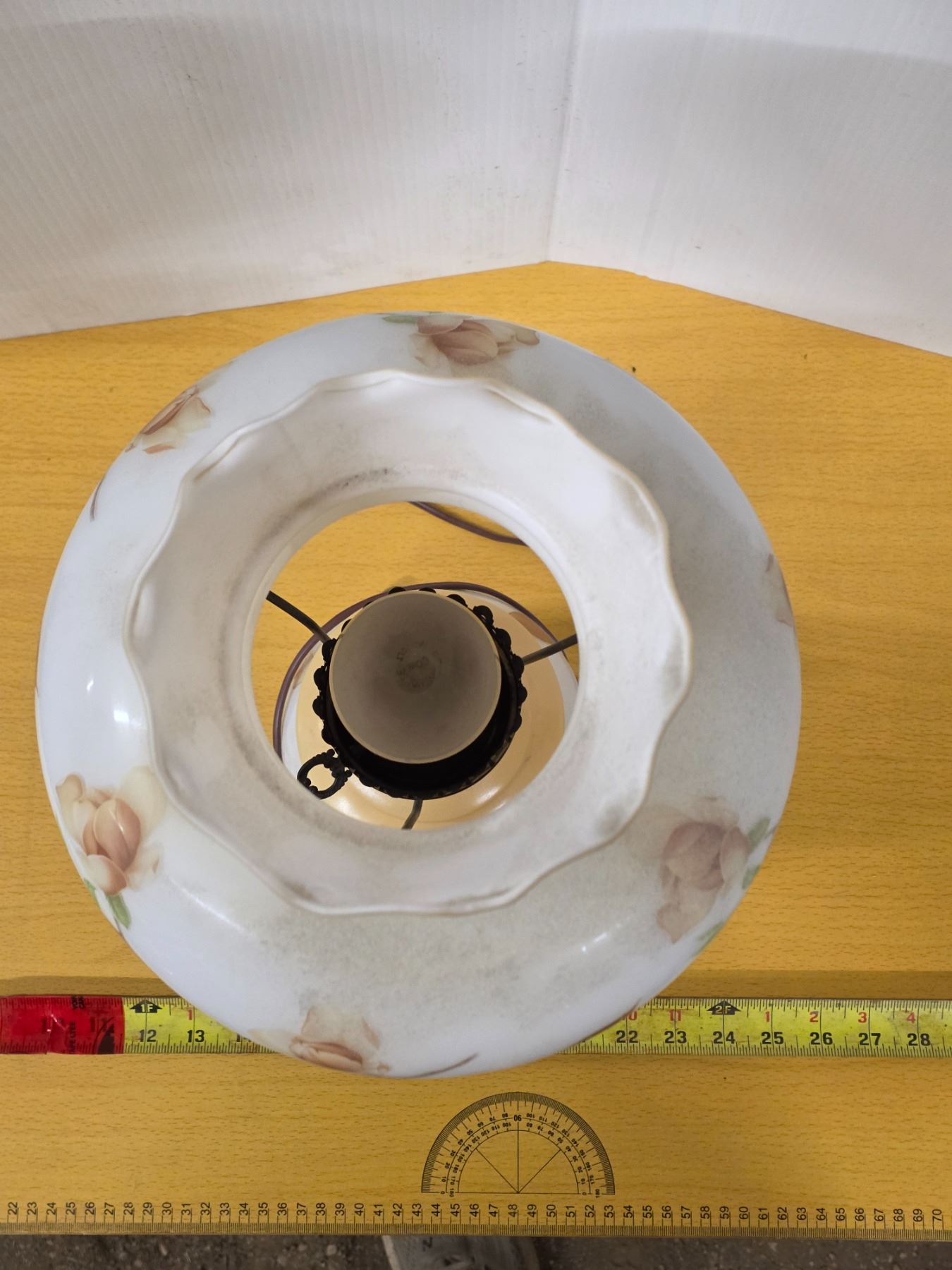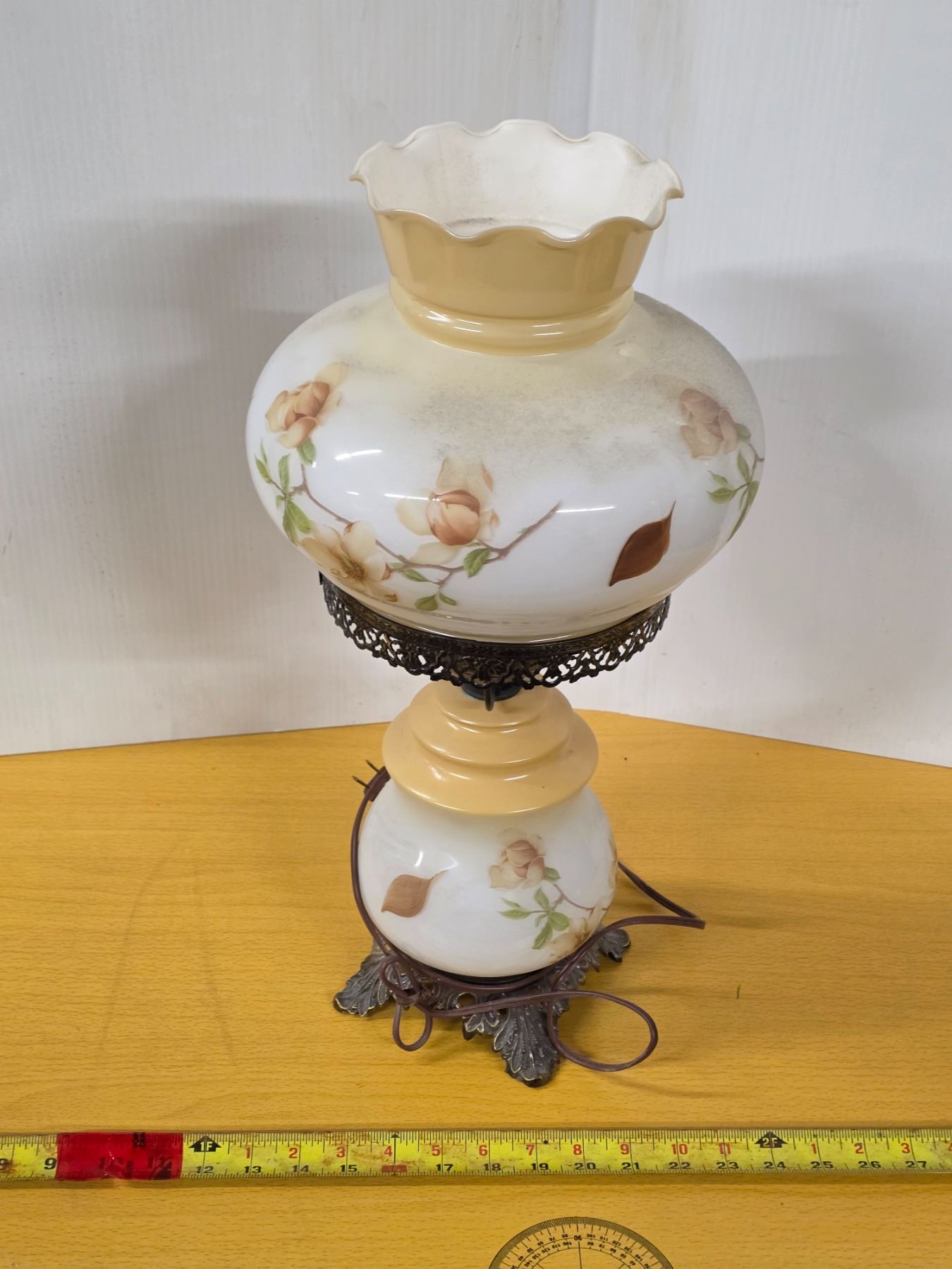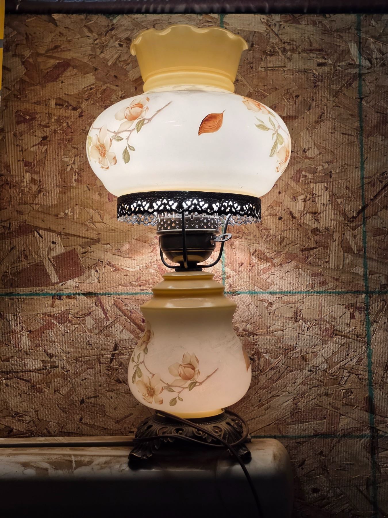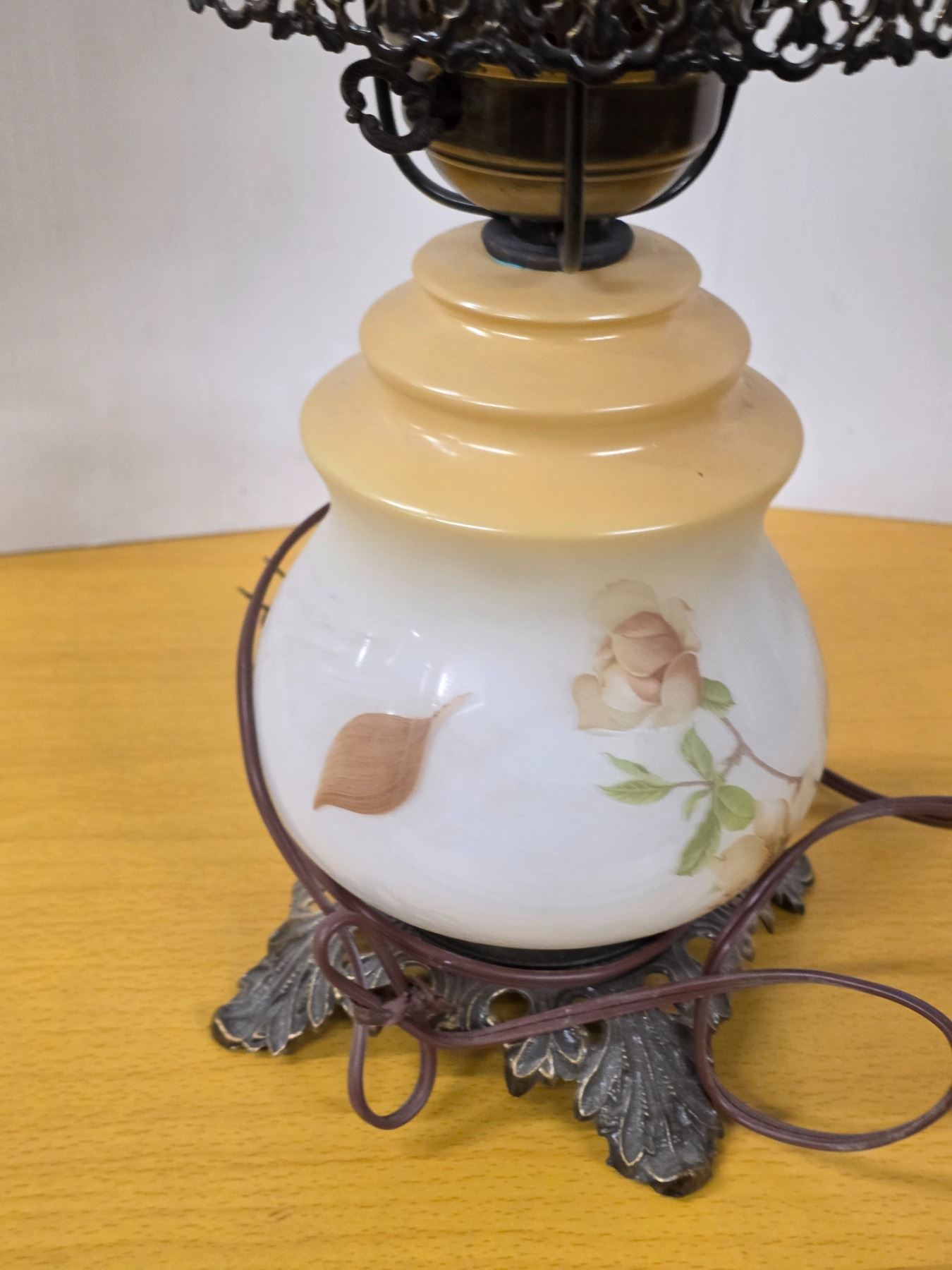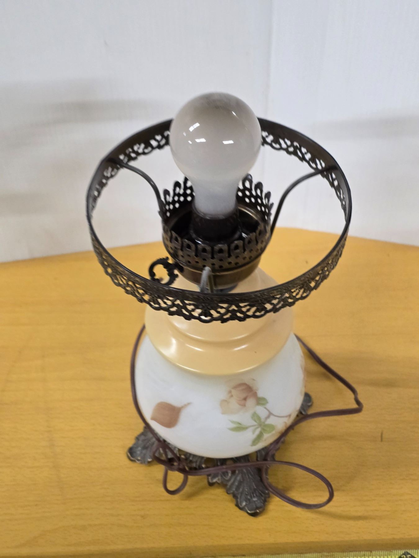 Tarnished metal base glass lamp- works
