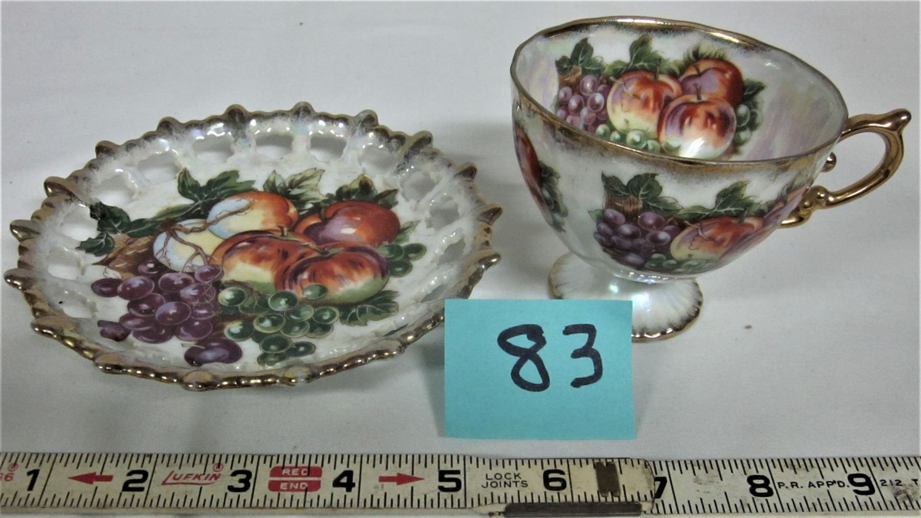 Tea cup footed & Lusterware saucer fruit basket gold trim marked Shafford hand decorated - Japan