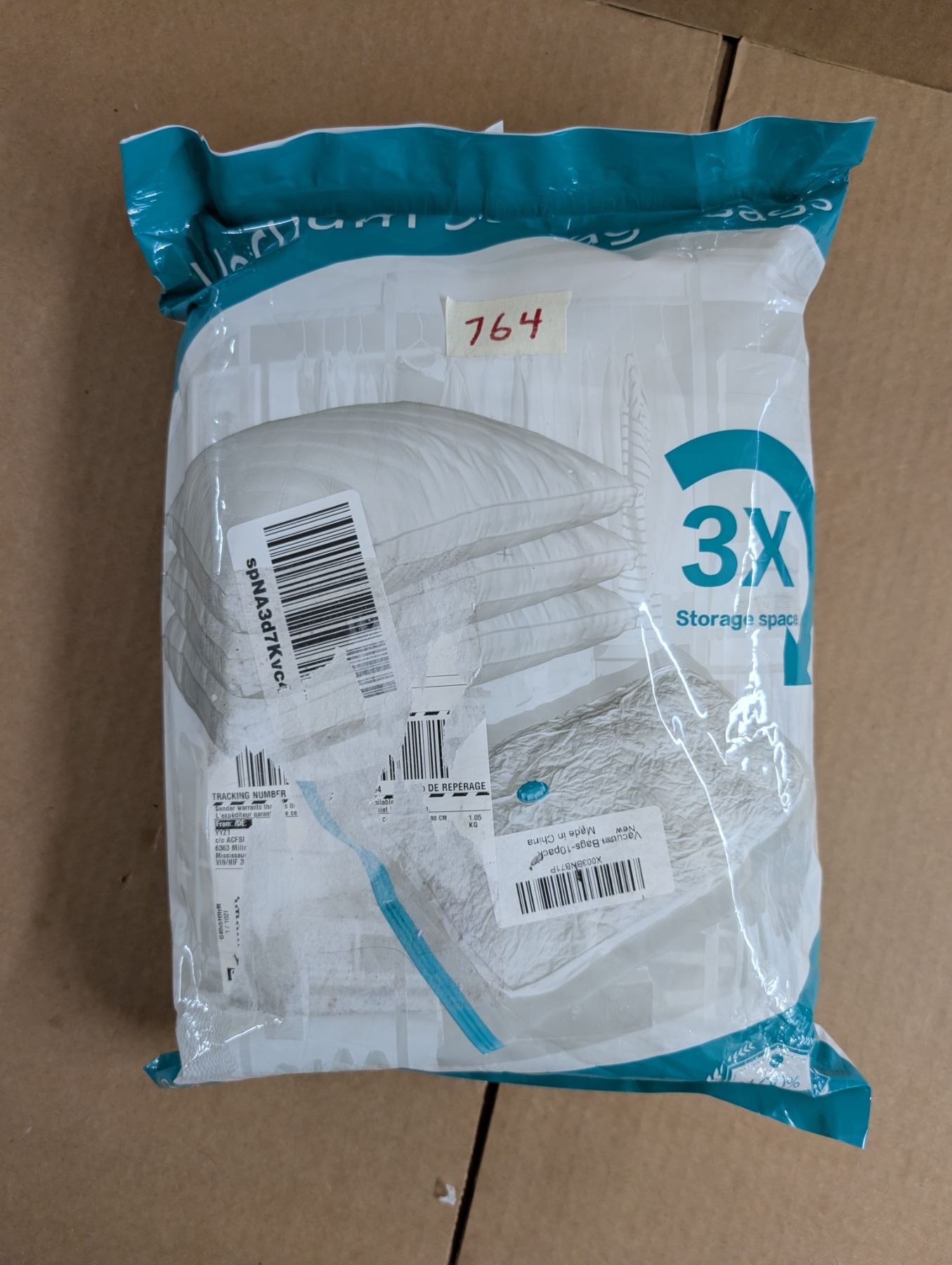Ten Vacuum Storage Bags. Compatible with home vacuum cleaner, electric air pump and hand travel pump. Factory sealed, never opened package contains: 40*60 cm x2 pcs, 50*70 cm x3 pcs, 60*80cm x2 pcs and one hand pump.