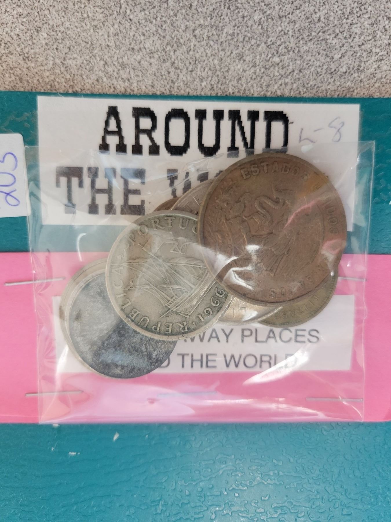 Ten different coins from far away places around the world