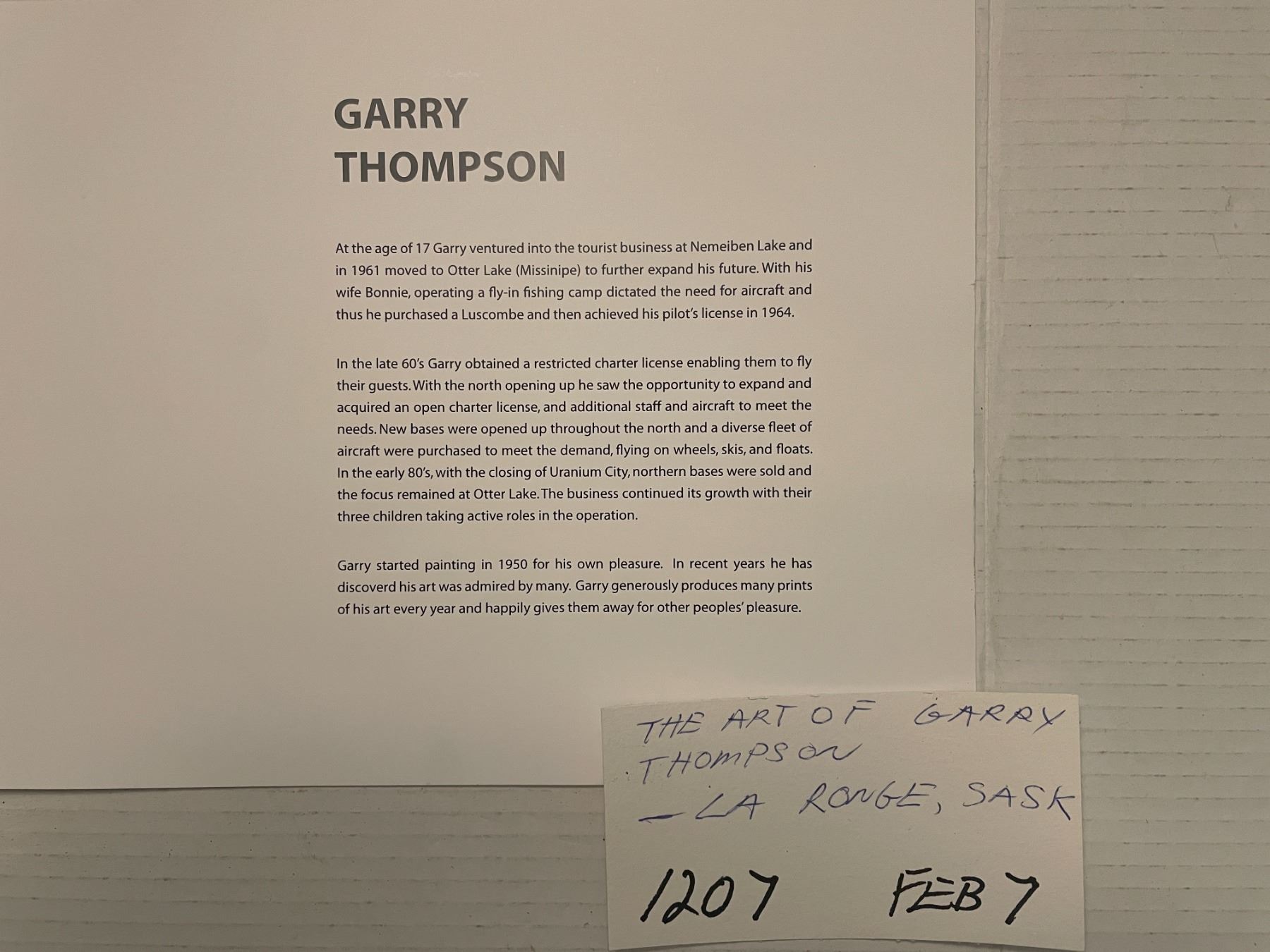 The Art of Garry Thompson - LaRonge, SK