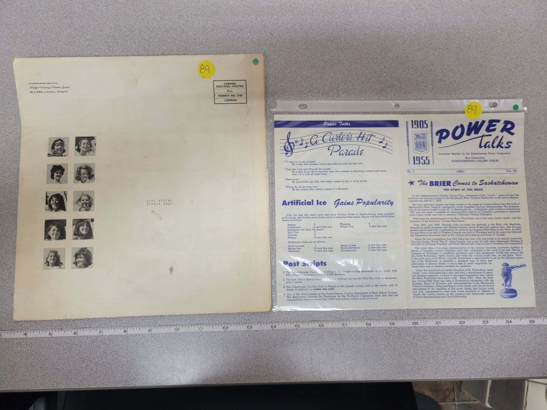 The Briar curling comes to SK 1955 Jubilee pamphlet & 1964 Canadian motors Regina, SK fold out calendar