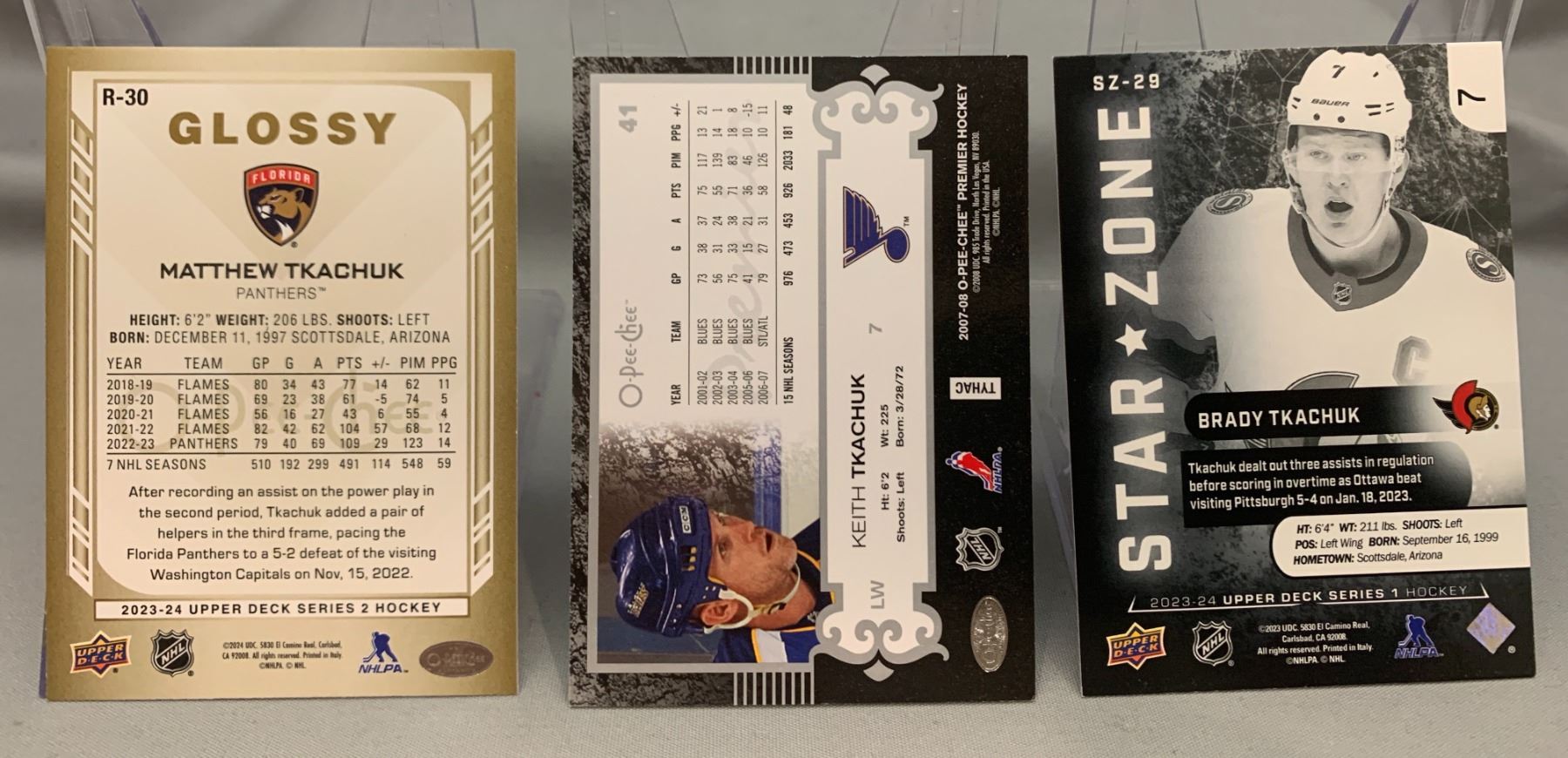 The Tkachuks, kieth, mathew, and brody card trio hockey cards