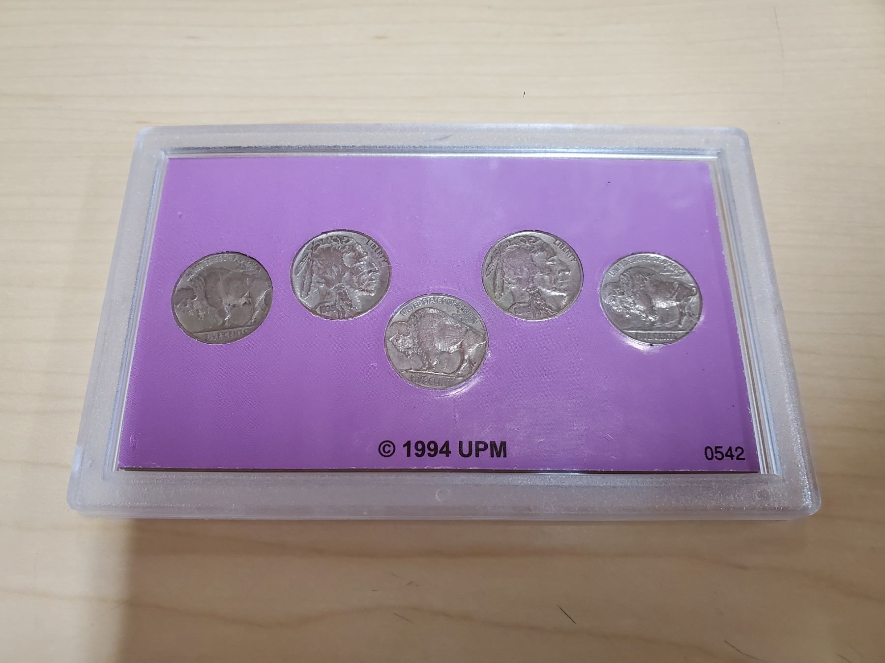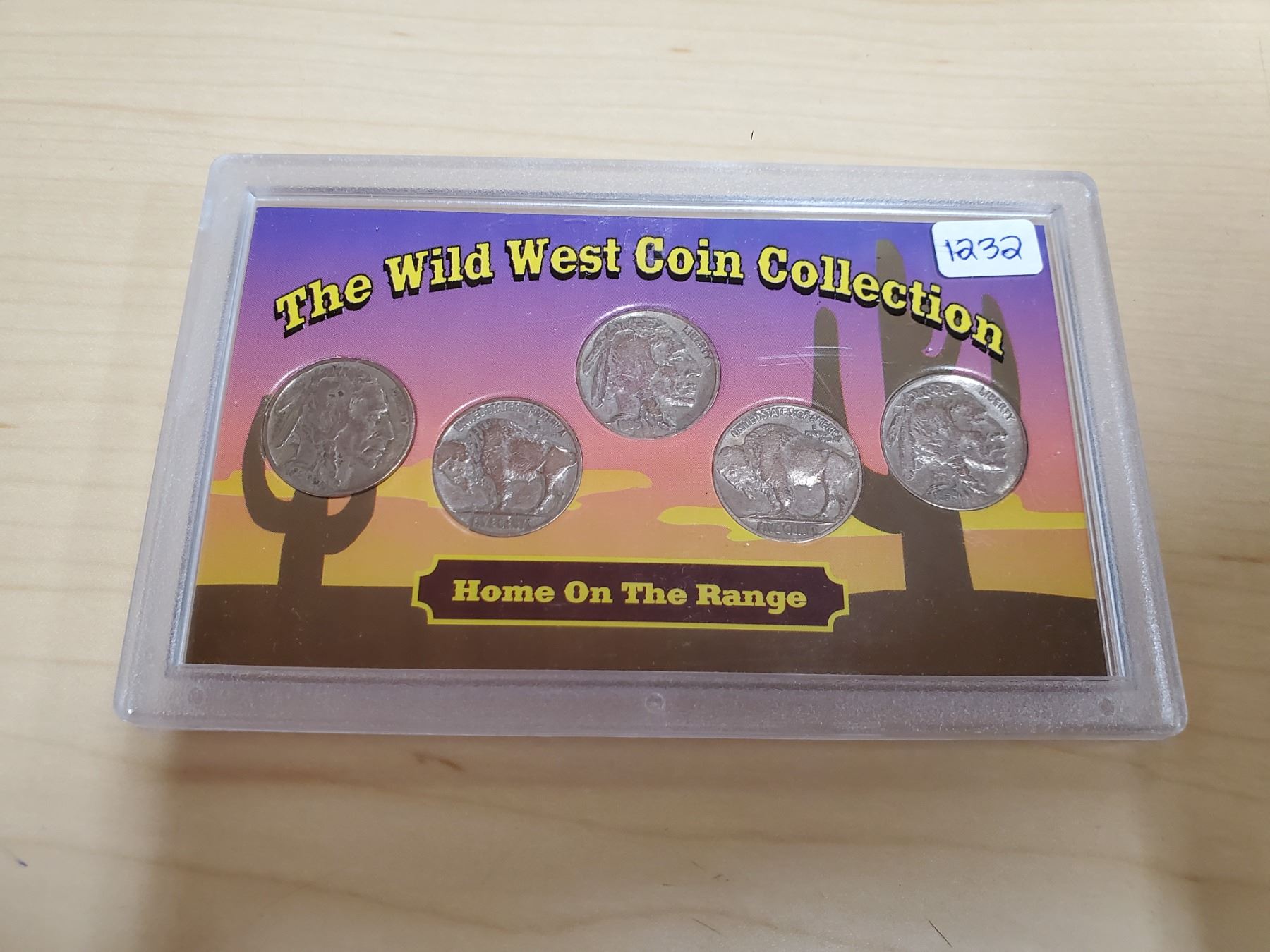 The Wild West Coin Collection. 5 U.S. Buffalo Nickels housed in a hard plastic holder.