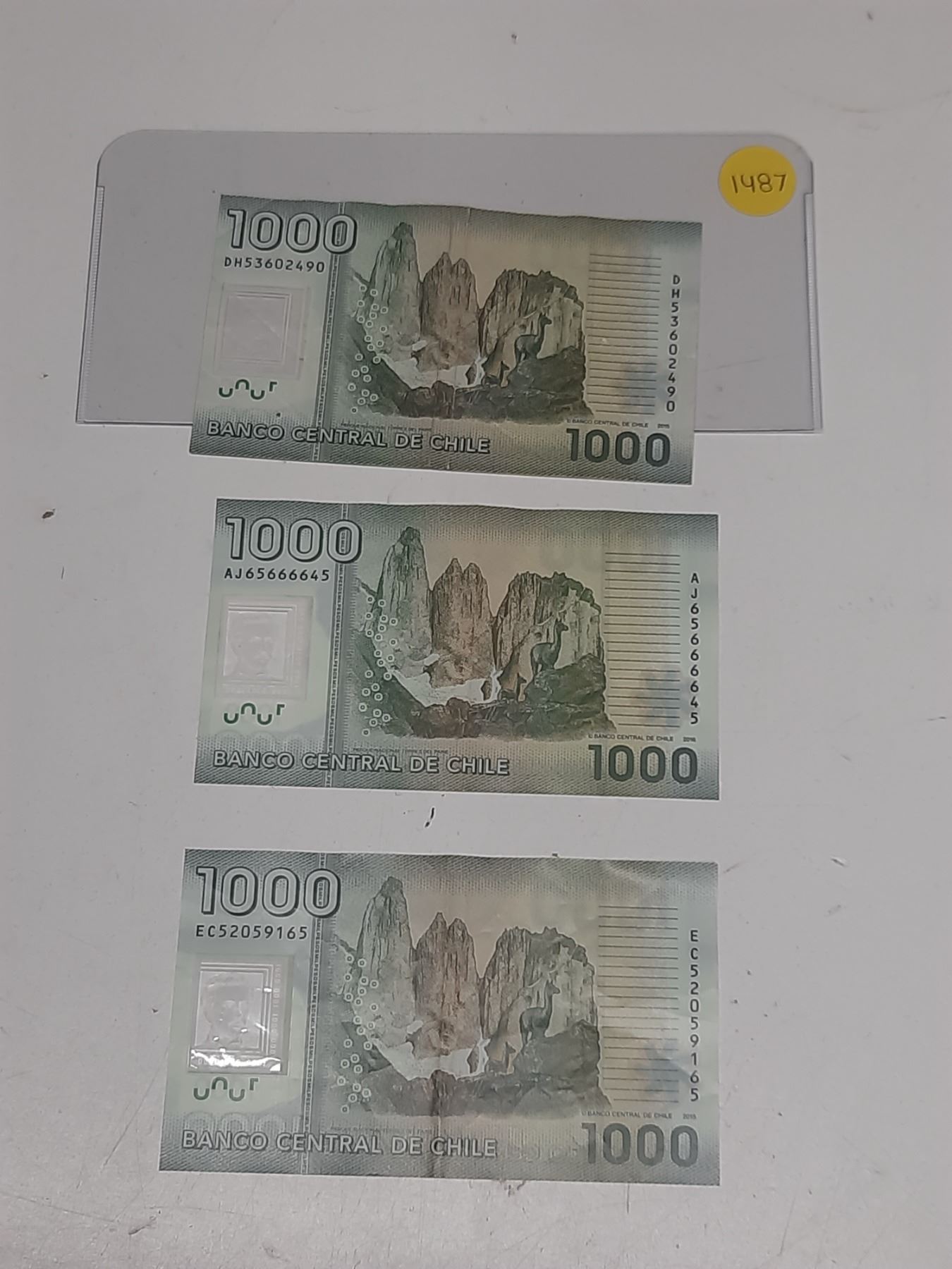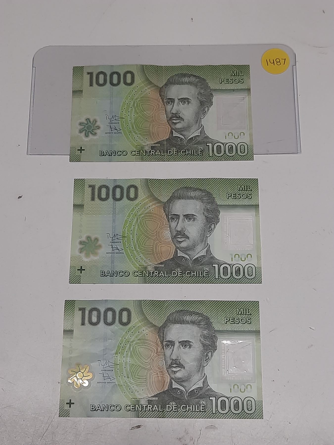 Three 2009-21 Banco Central De Chile 1000 Pesos bank notes