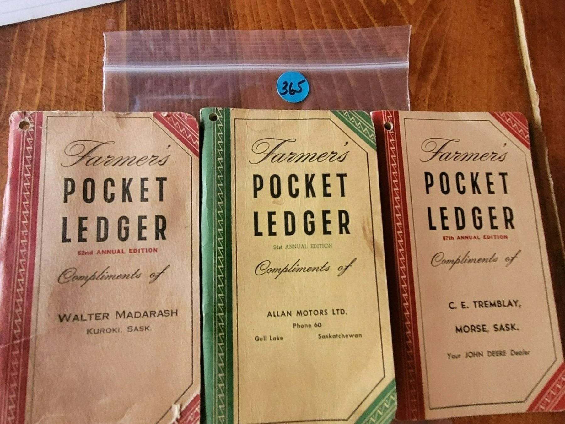 Three John Deere pocket ledgers - Morse 1953, Allan 1957, Kuroki 1948 (lightly used)