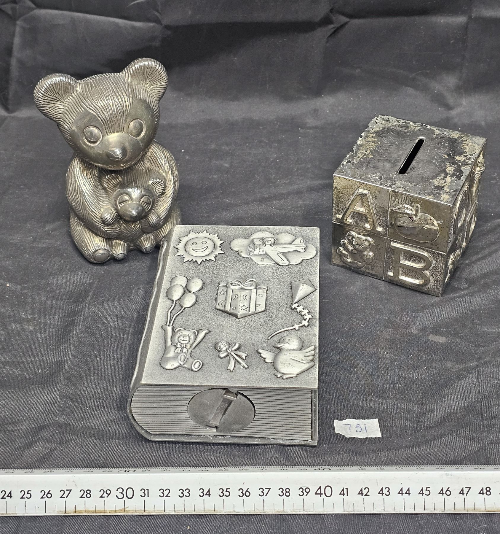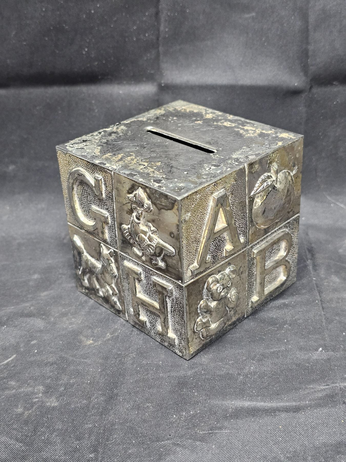 Three Silverplated Children’s Banks (one unmarked)