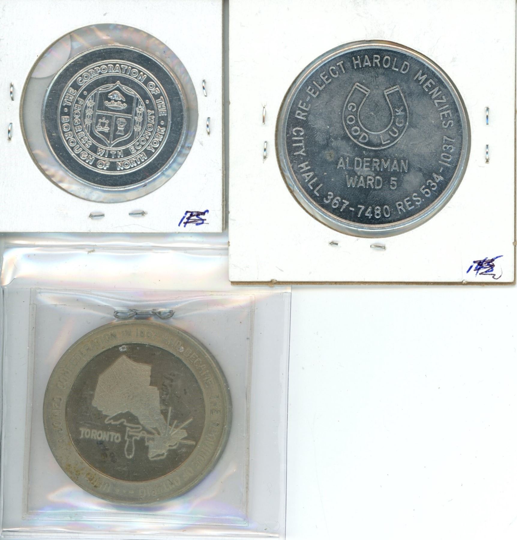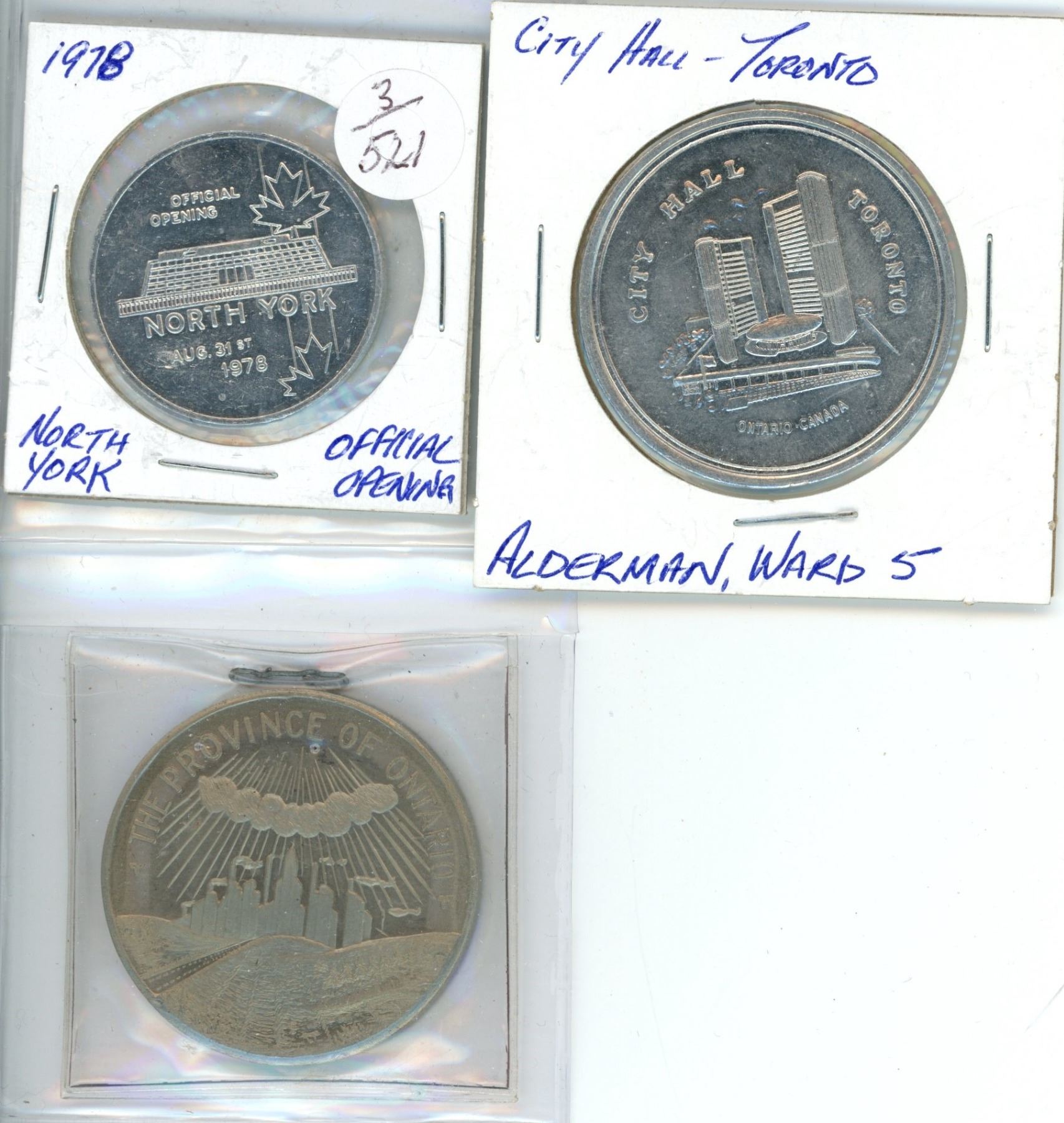 Three token lot - Upper Canada joined confederation 1867, City Hall Toronto Ward 5, 1978 North York official opening