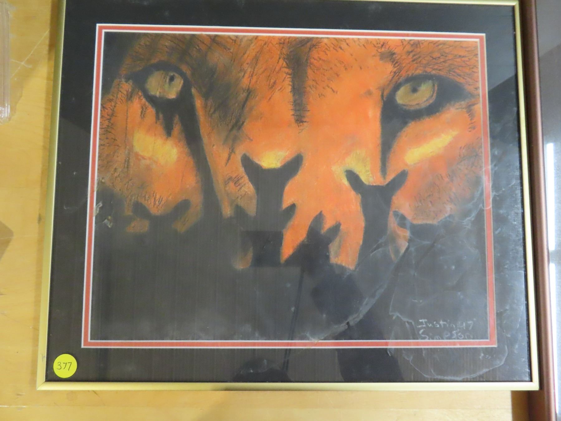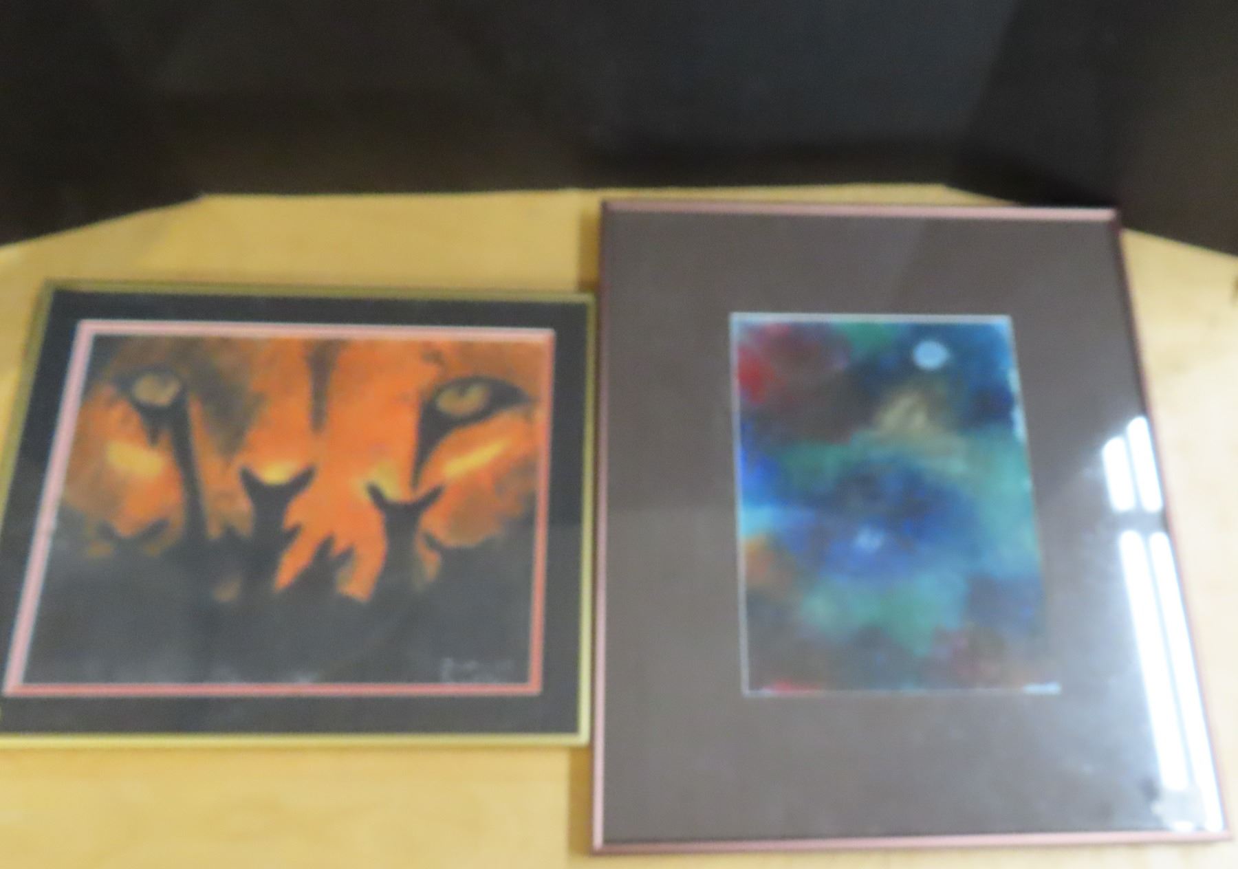 Tiger eyes 1991 pastel by justin simpson -13"x16" and cosmos-acrylic on canvas-19"x16"