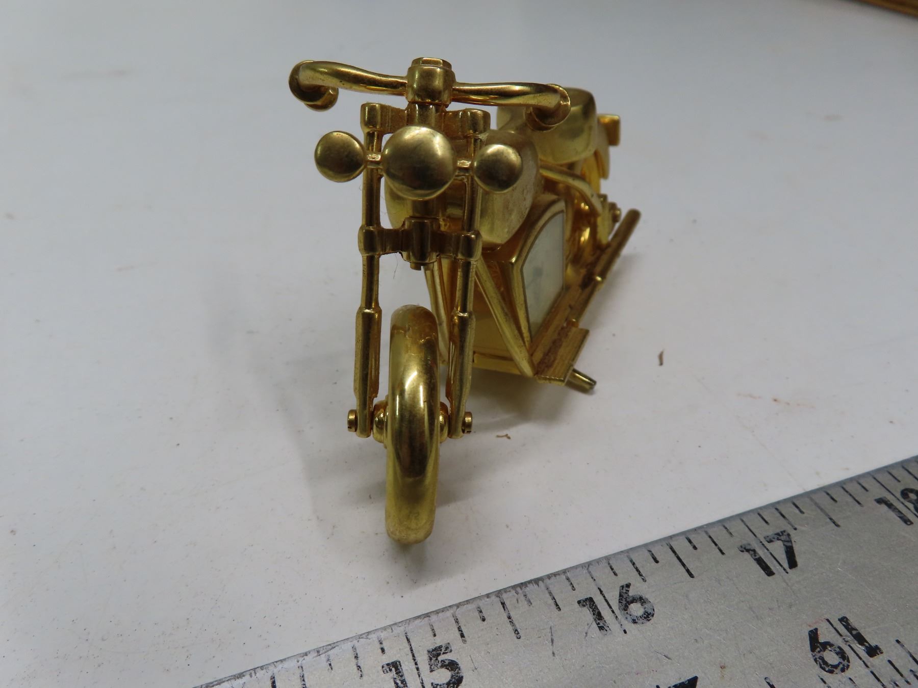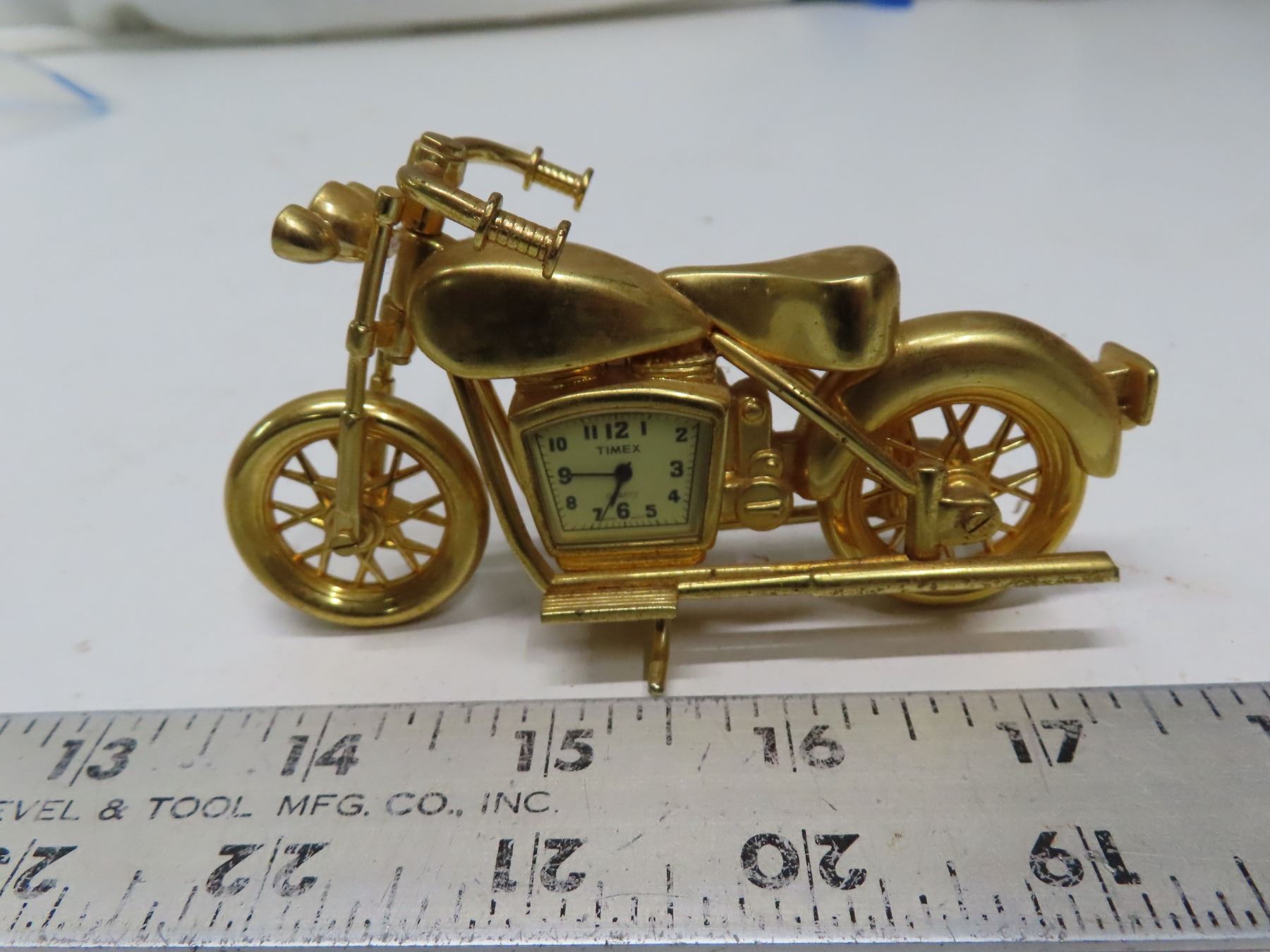 Timex mini motor cycle gold brass novelty clock 4"x2.5"