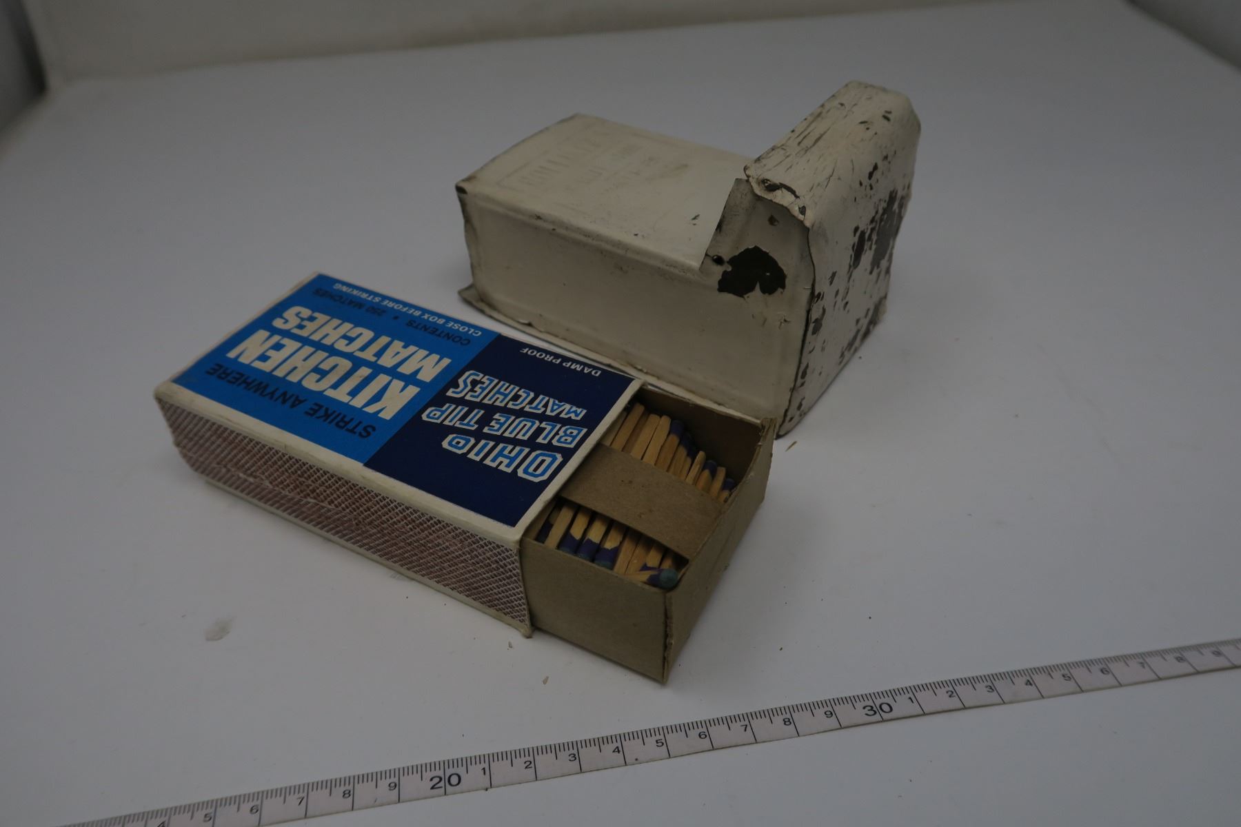 Tin Matchbox Holder with Matchbox and Matches