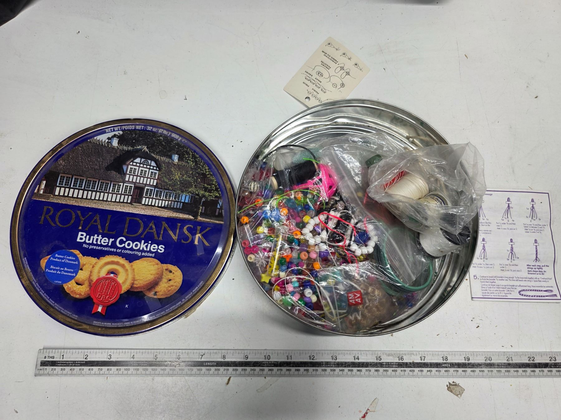Tin full of sewing supplies