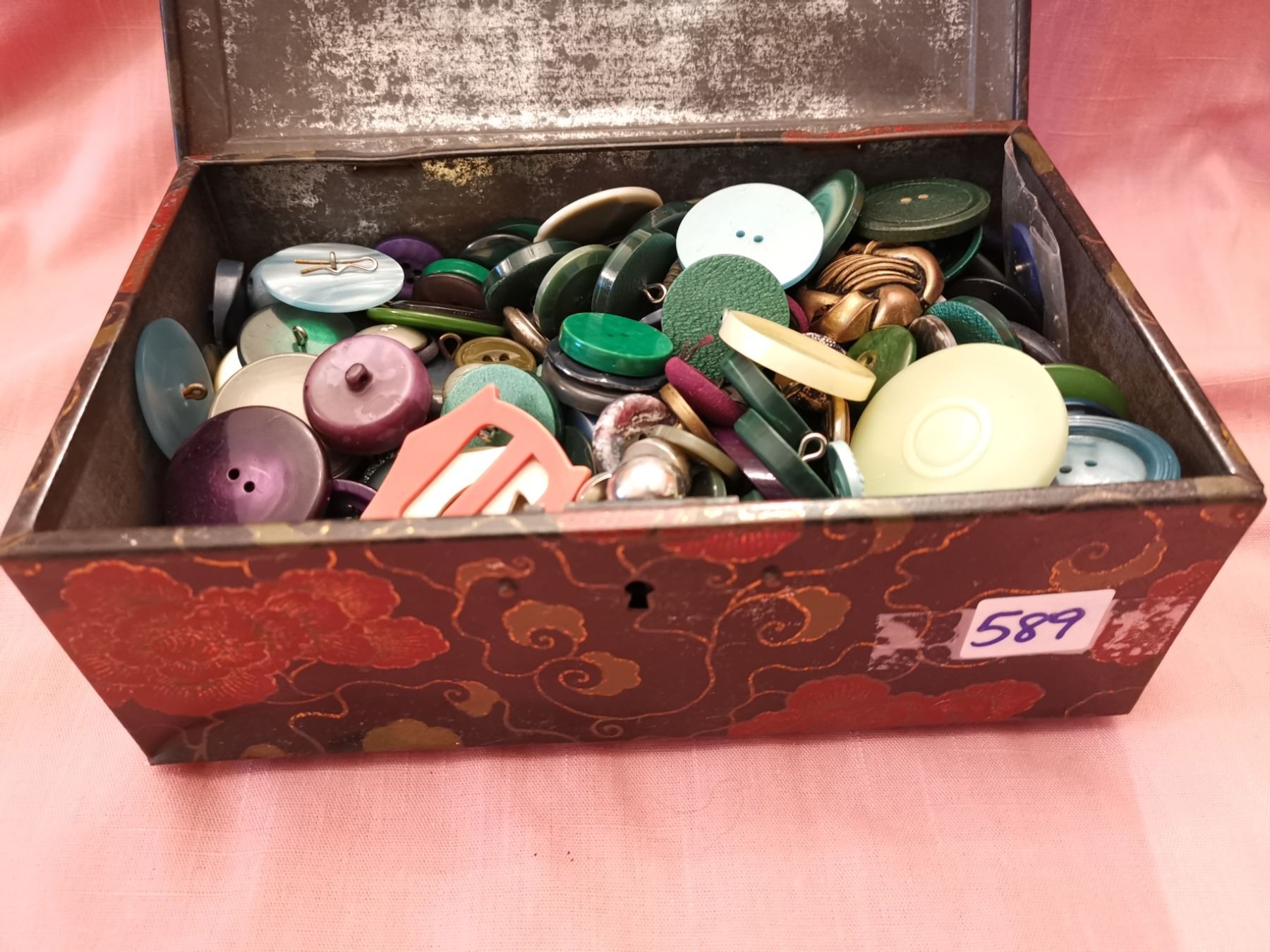 Tin of vintage buttons