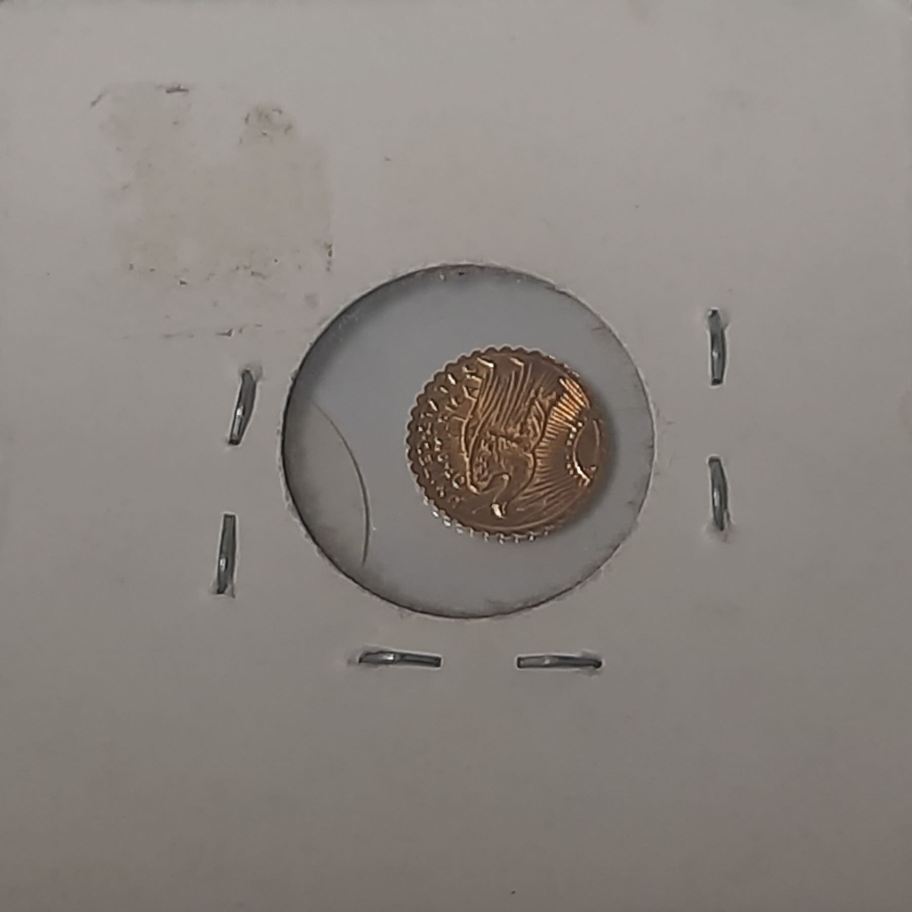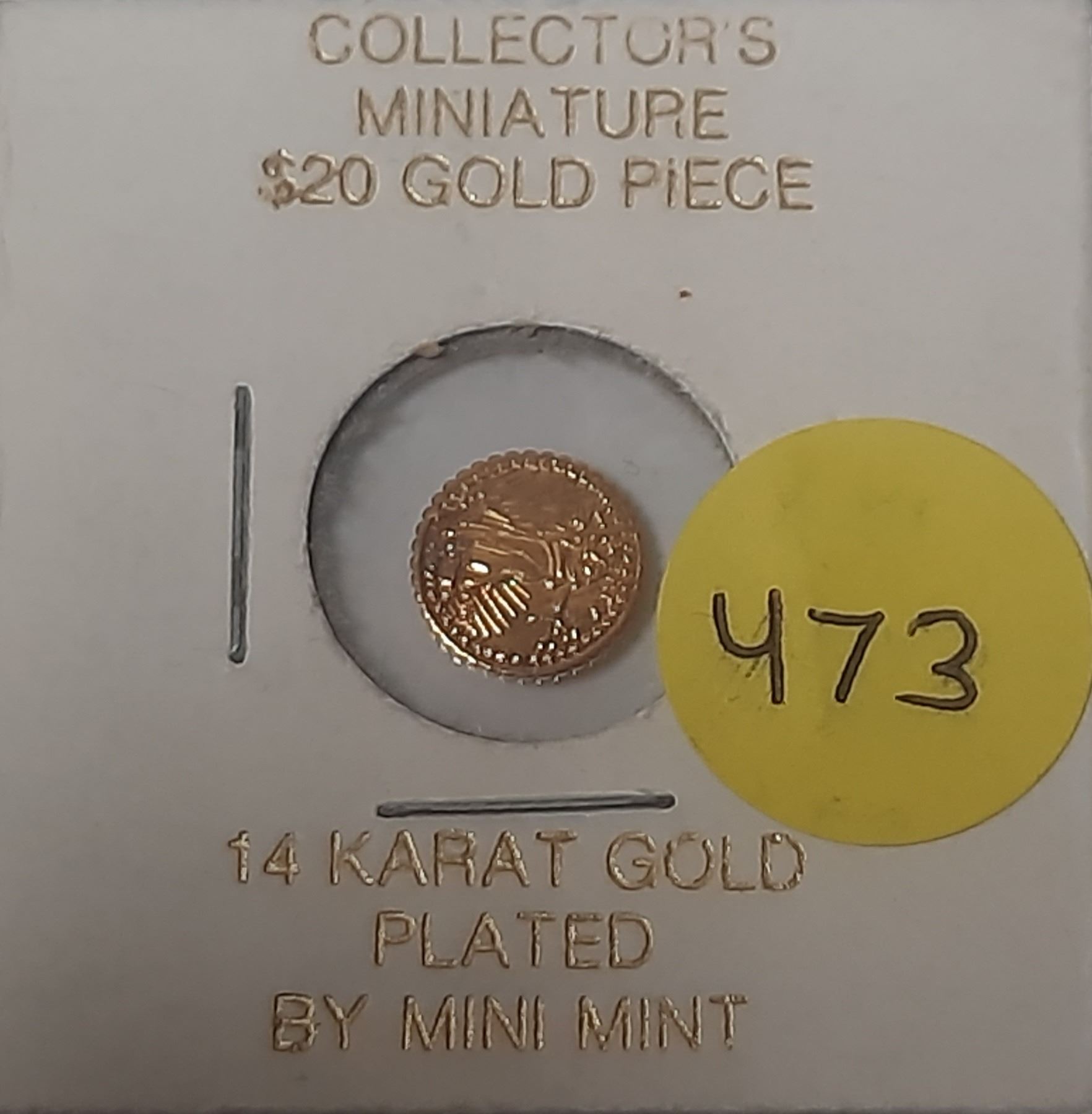 Tiny Replica of U.S. $20 gold coin. Replica has been 14 karat gold plated.