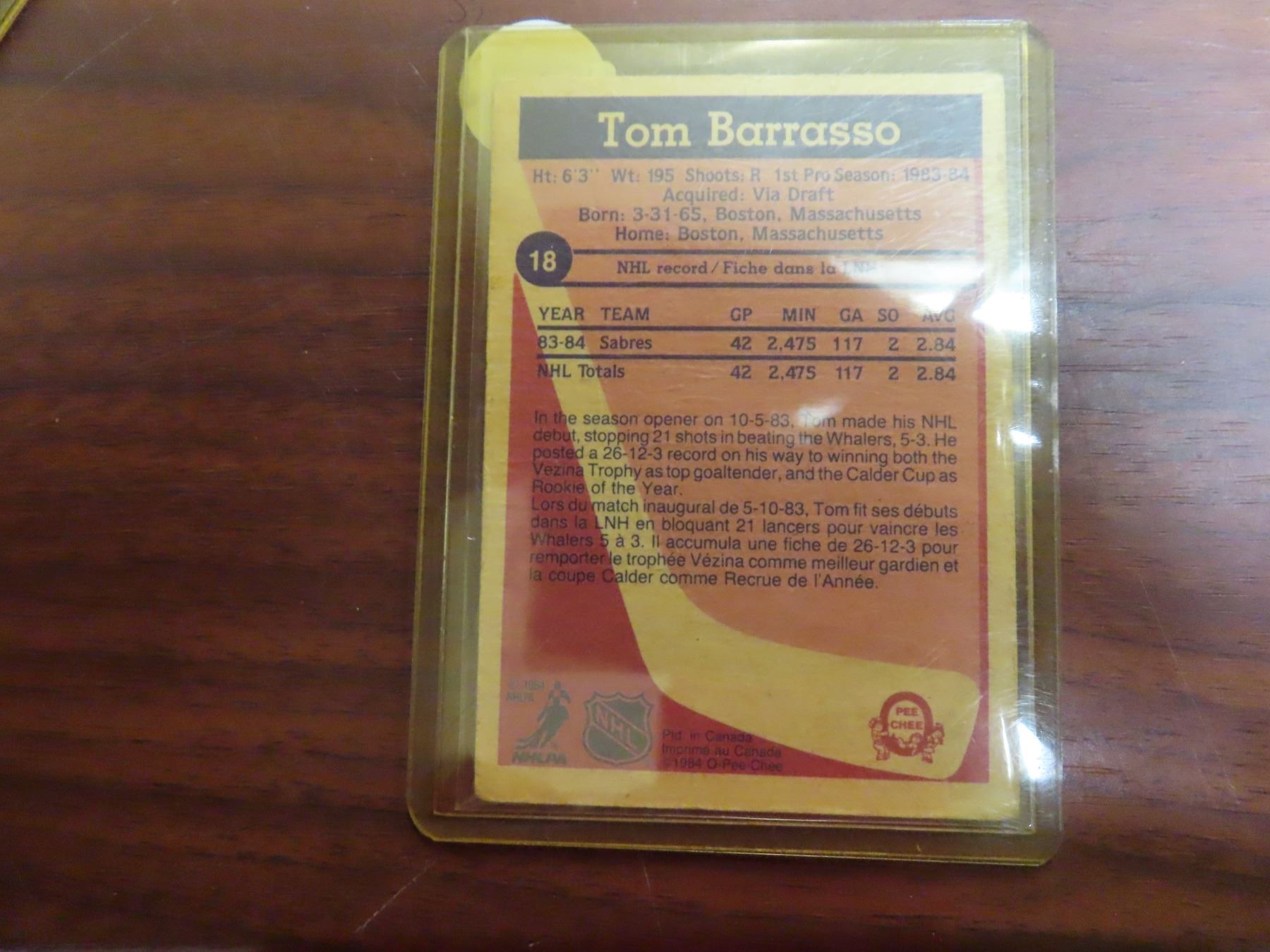 Tom barrasso- rookie card
