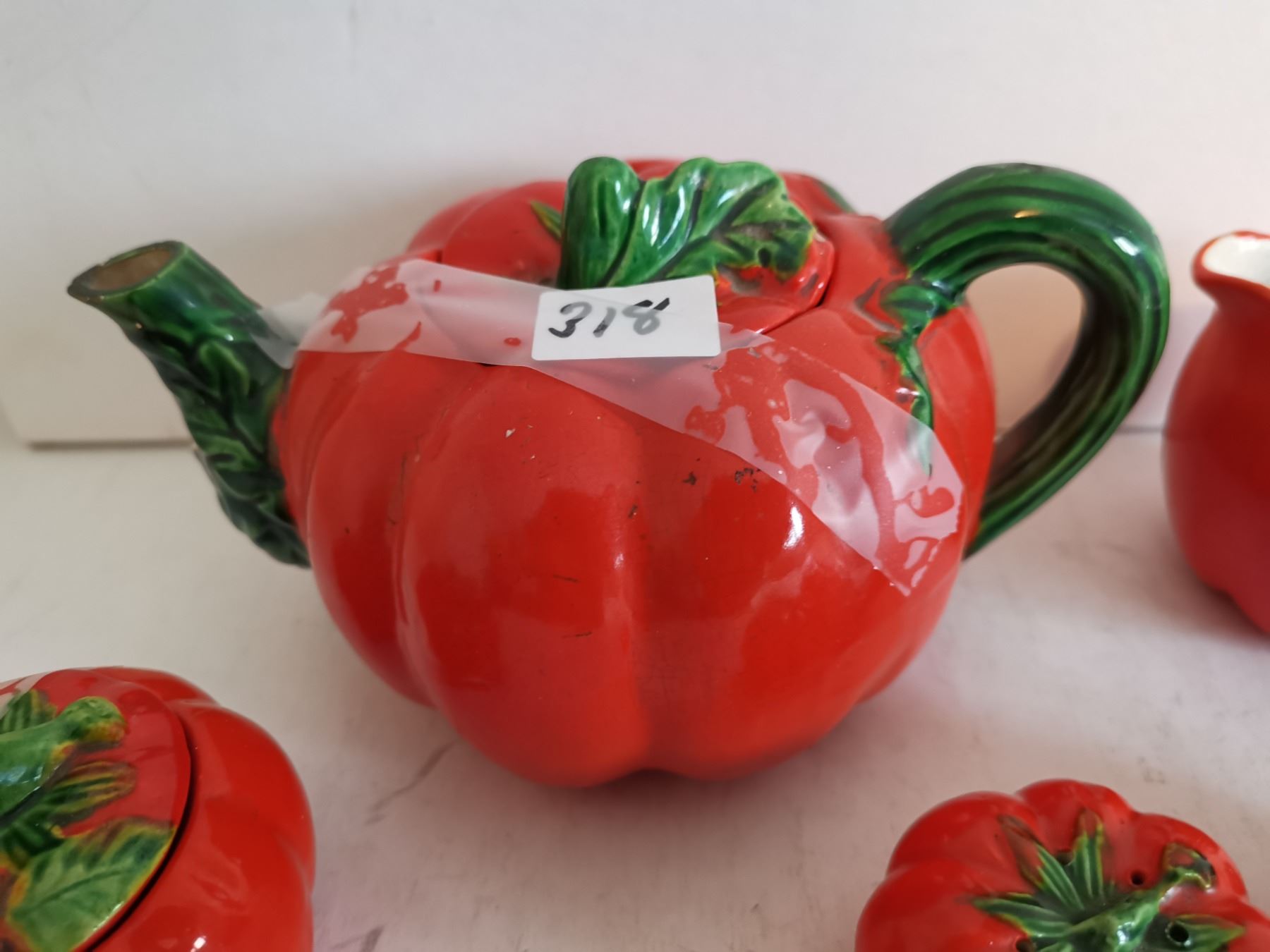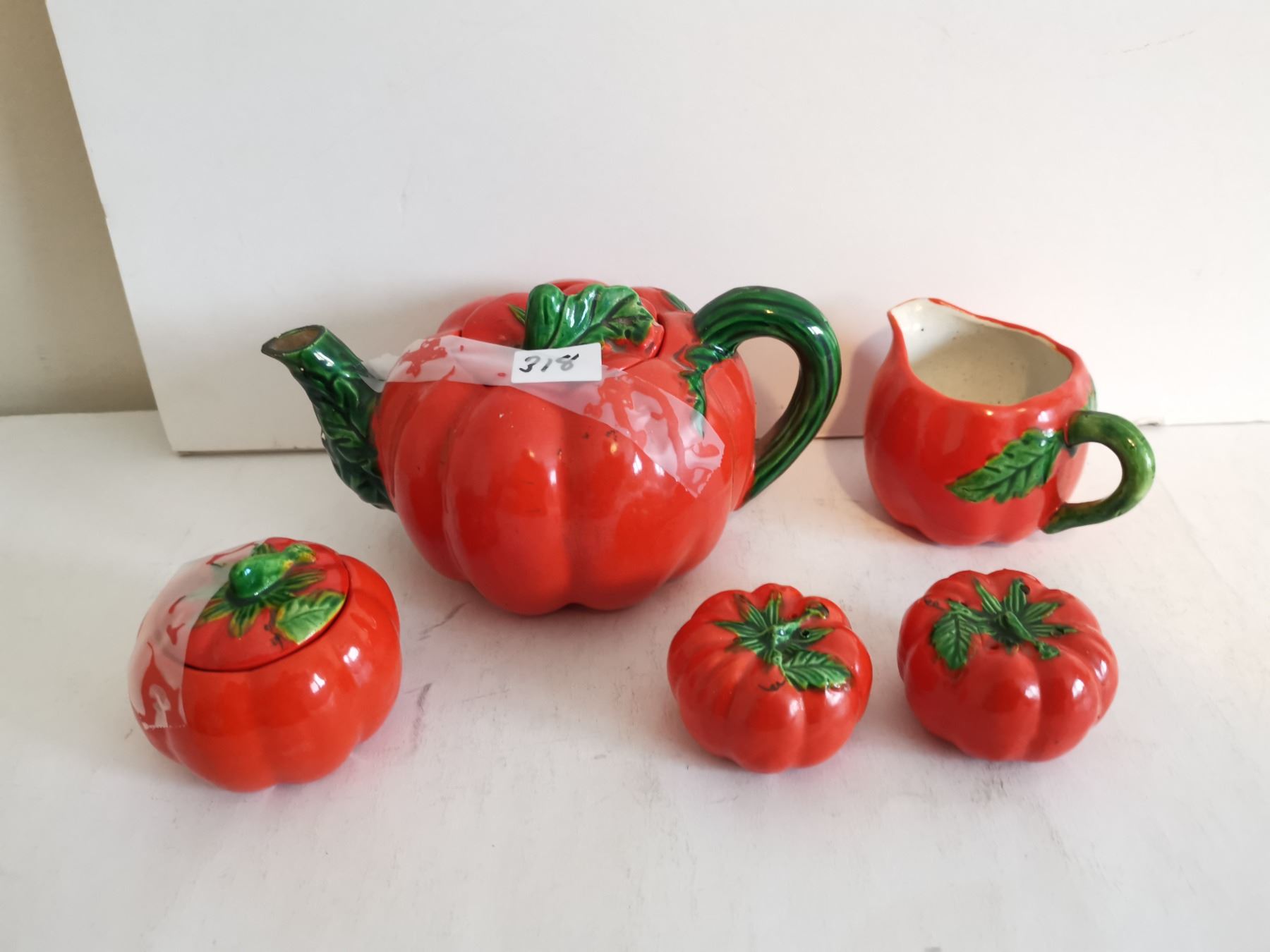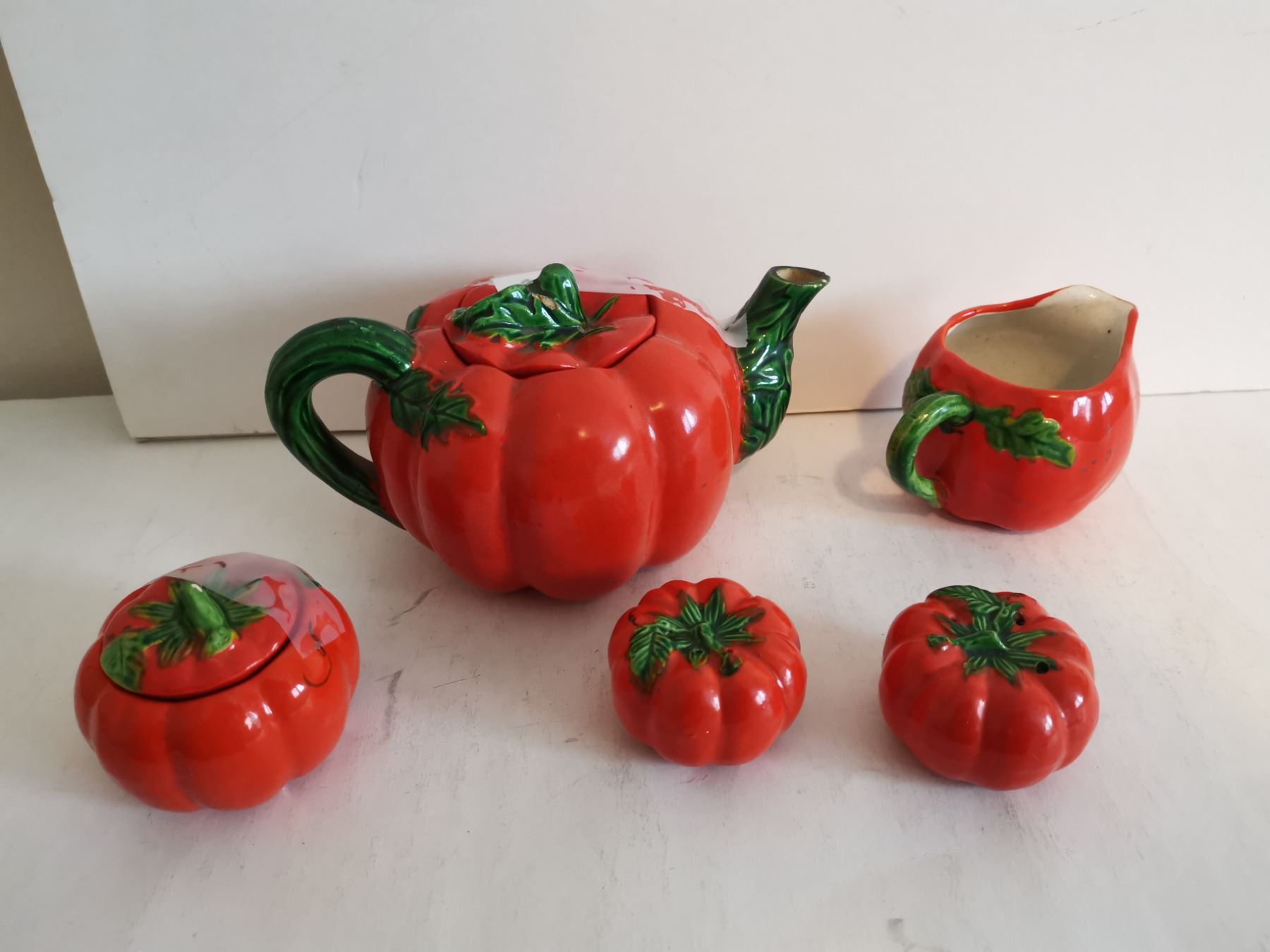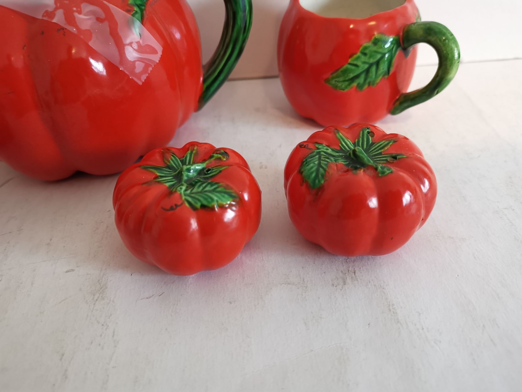 Tomato Teapot, Cream & Sugar Bowl, S&P Shakers