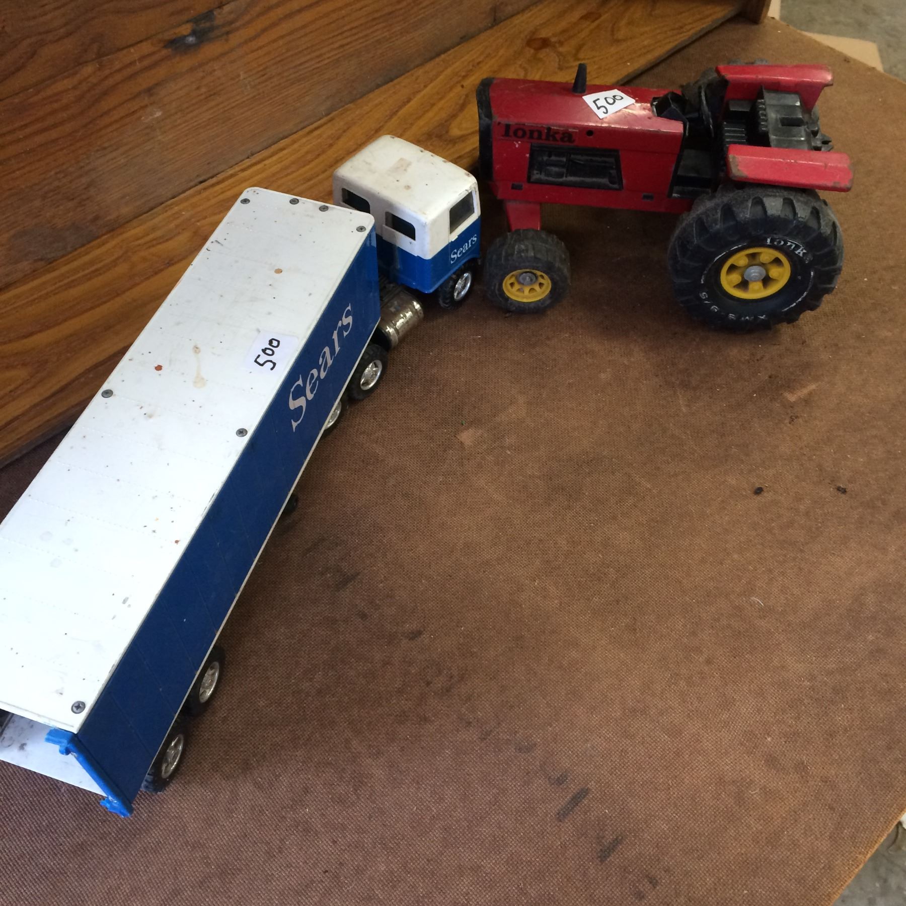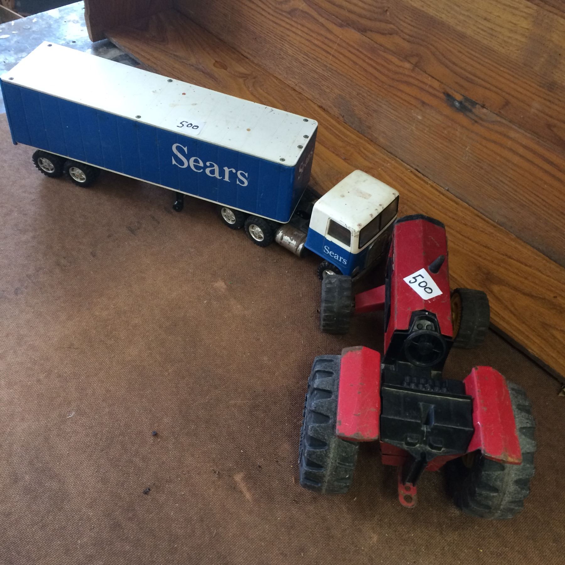Tonka Tractor +Sears Truck and Trailer-missing rear doors