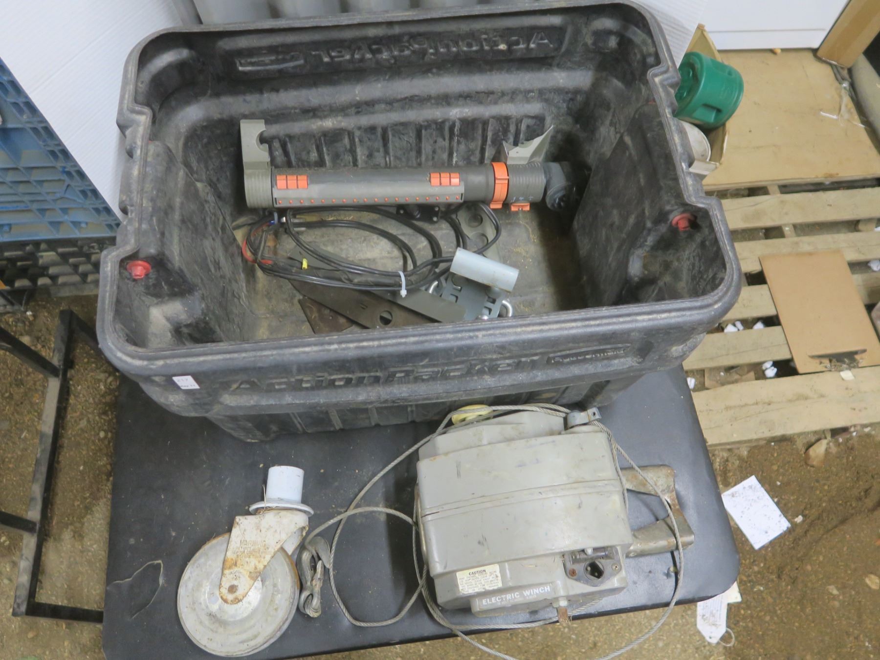 Tool tote w/ electric winch(as-is) & assorted hardware