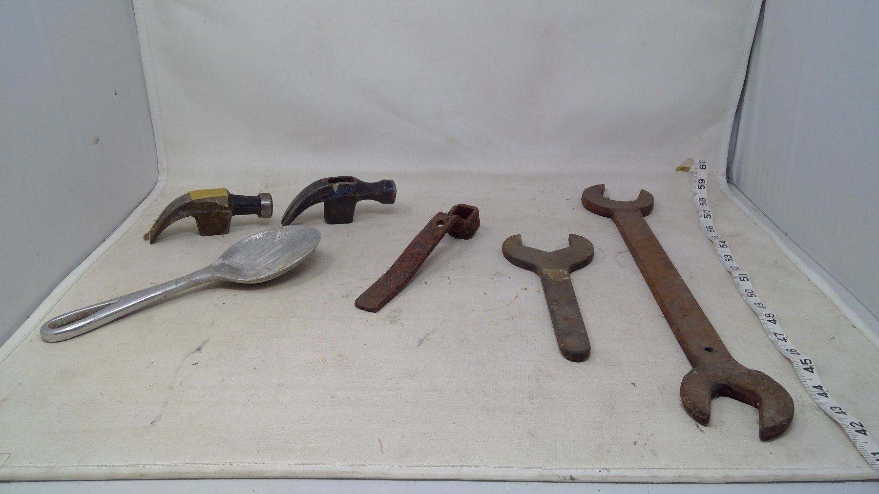 Tools, Hamer Heads, Aluminum Ladle, Old Wrenches, etc