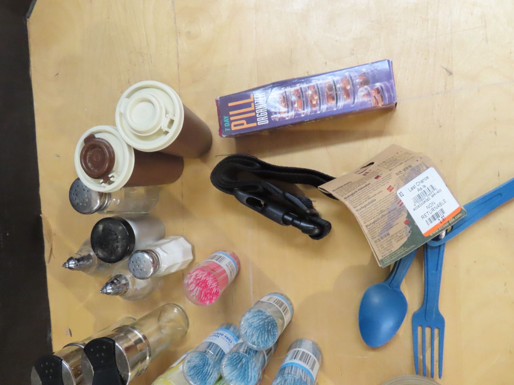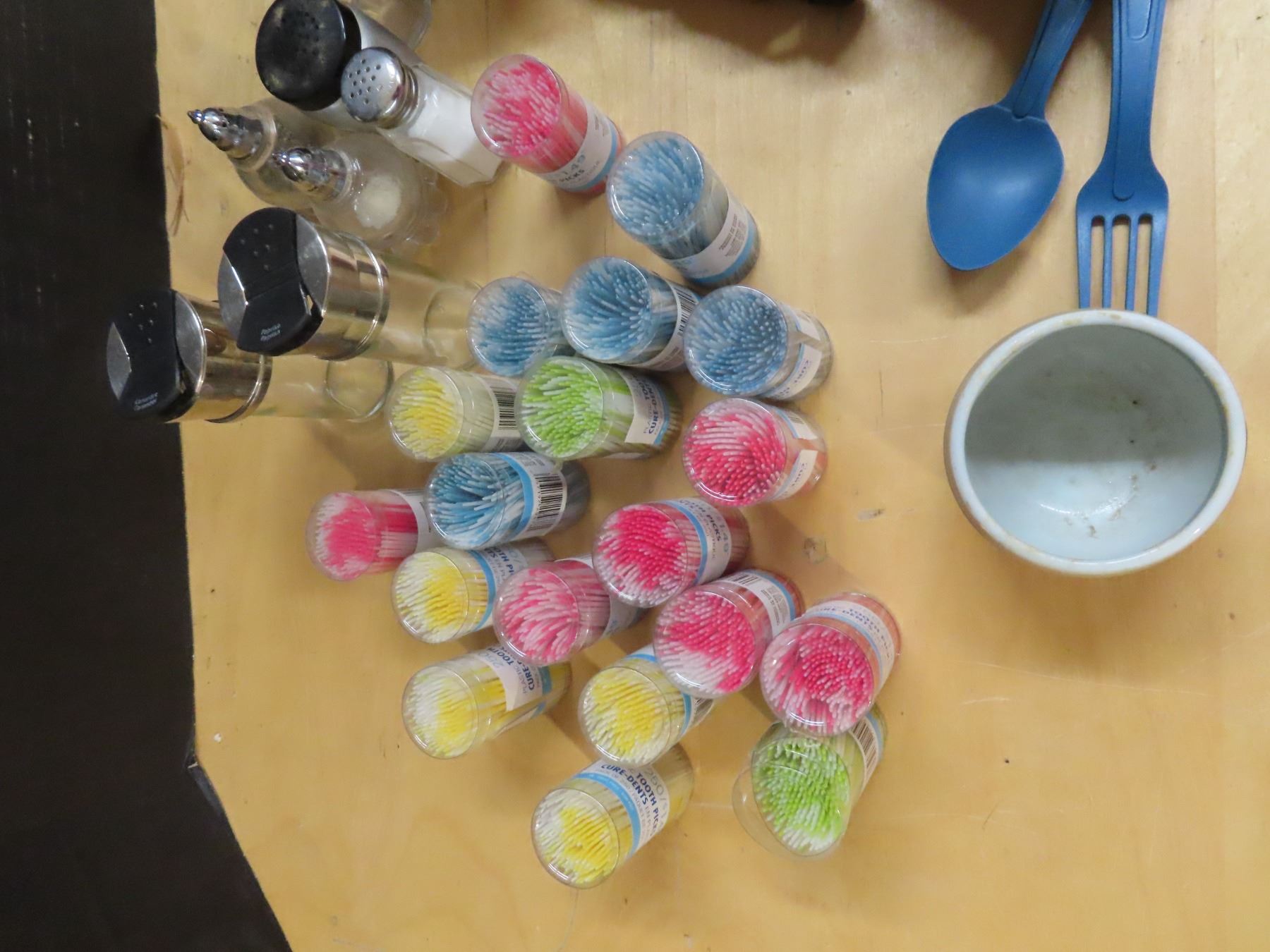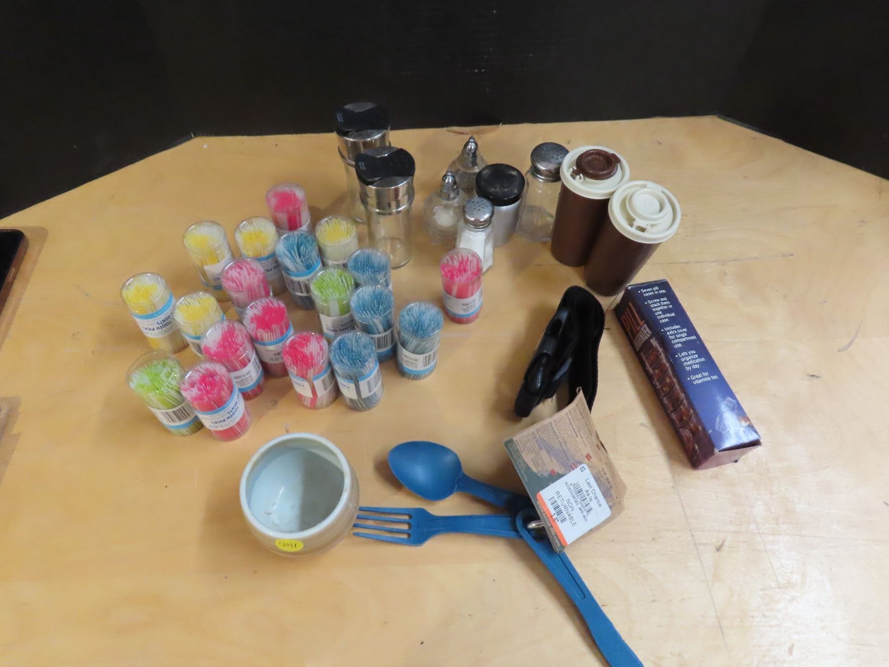 Tooth picks, salt and pepper shakers etc