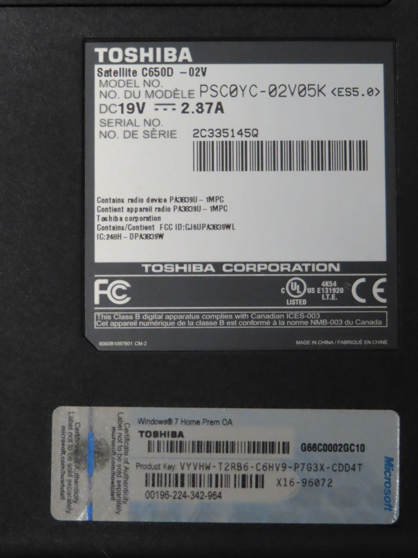 Toshiba 15.5inch screen laptop - Satellite C650D -02V (no charging cable or adapter)