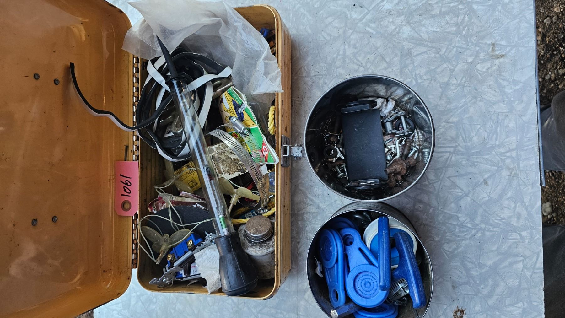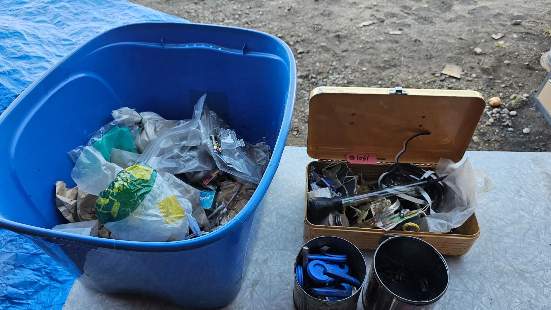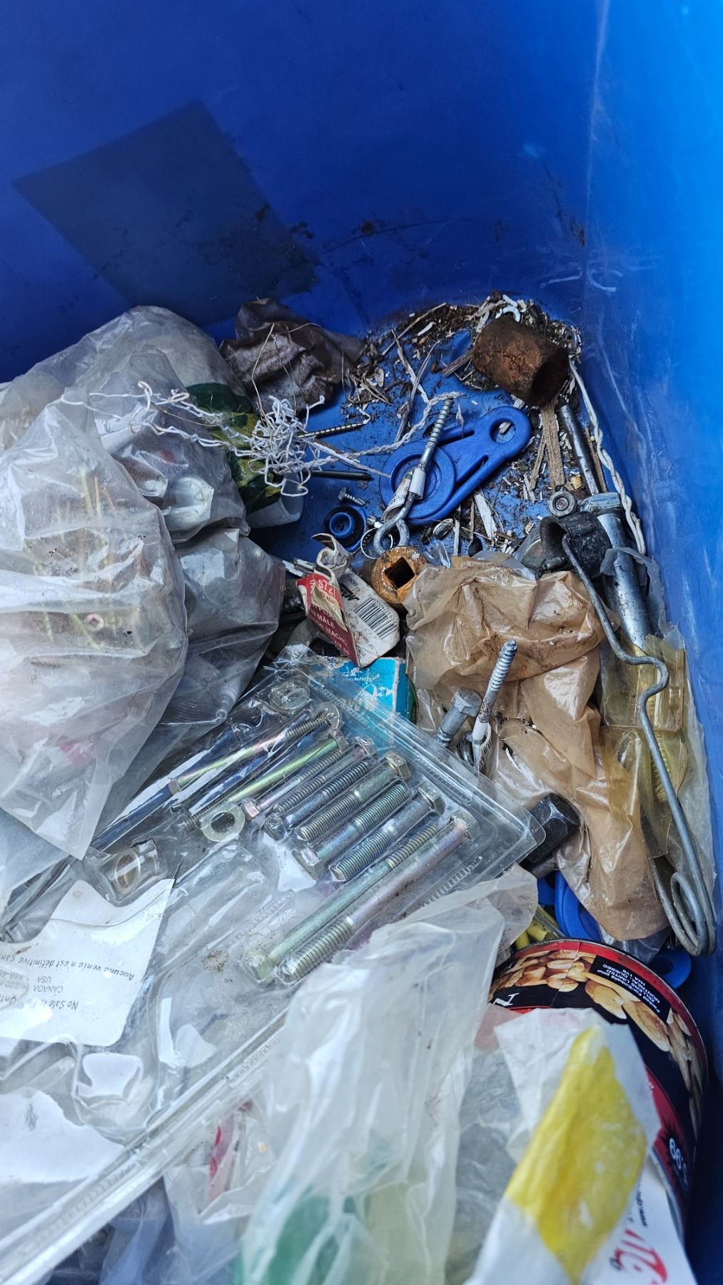 Tote of Misc Hardware- Some Brand New in Package- Some Loose Bags - Some Mixed together- O rings- Light Sockets