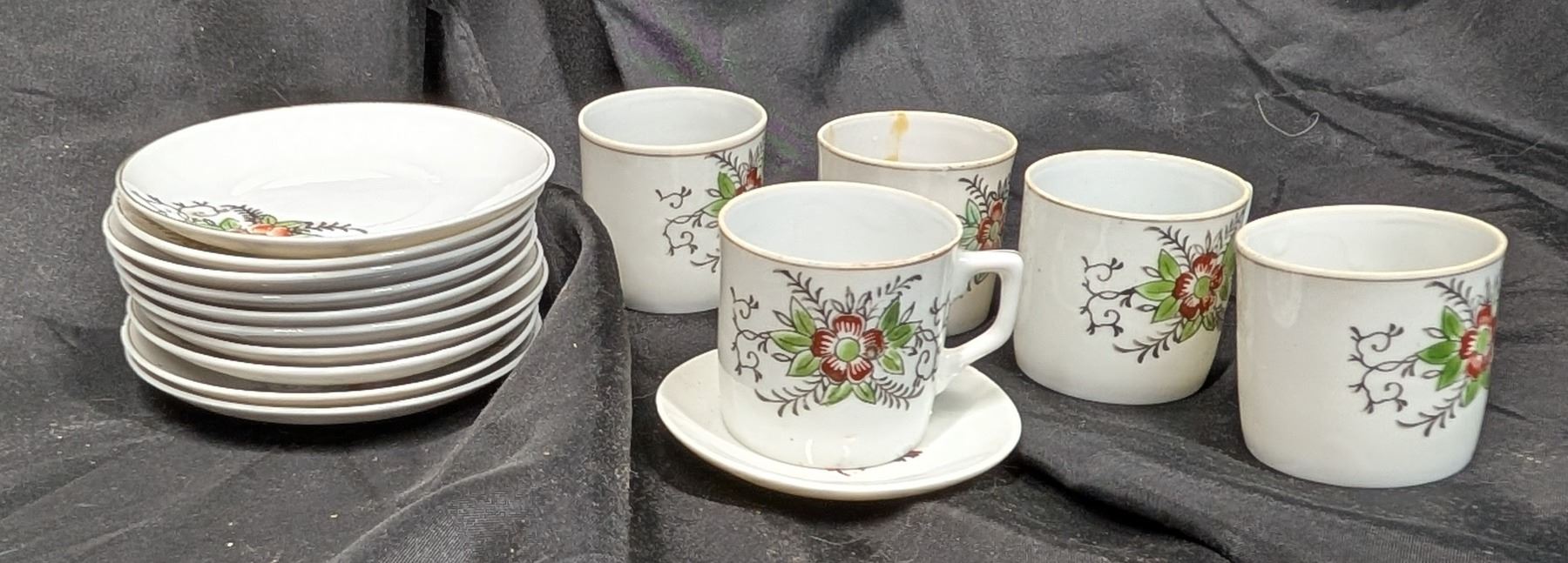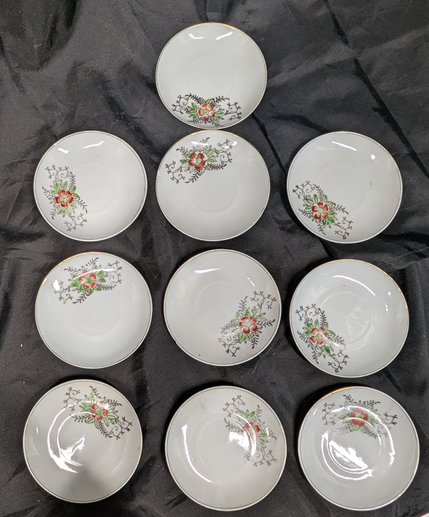 Toy China tea set 1950s (10 Plates) (1 smaller plate) (5 tea cups)